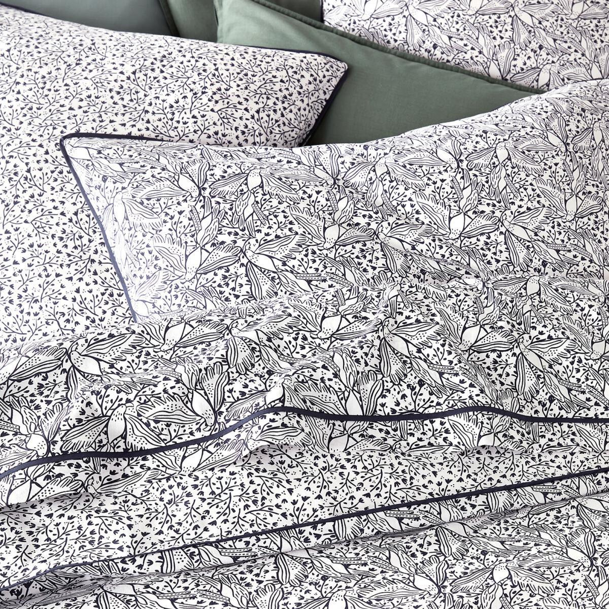 A stylised pattern in super soft washed cotton. Dotted with foliage and birds, Leafbird bed linen is inspired by ancient prints.