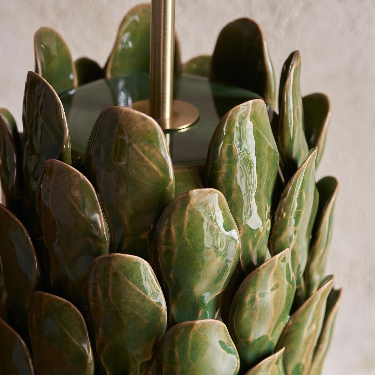 Inspired by the opening leaves of an artichoke, the dark olive reactive glaze of this nature inspired ceramic table light is sure to add a touch of luxury to your home. Finished with complementary brushed aged brass B22 lamp holder and black braided fabric flex. Pair with one of our 35cm decorative fabric or 32cm raffia shades to complete the look. Product Dimensions: Sizes Available:1. 2. 3. 20cmx20cmx36cm Parcel 1 Packaged Dimensions: 46cmx32cmx32 Weight: 4612. Composition: Brass / Ceramic / Steel. This product will be dispatched by one of our trusted suppliers. You’ll be contacted by their selected courier about your delivery.