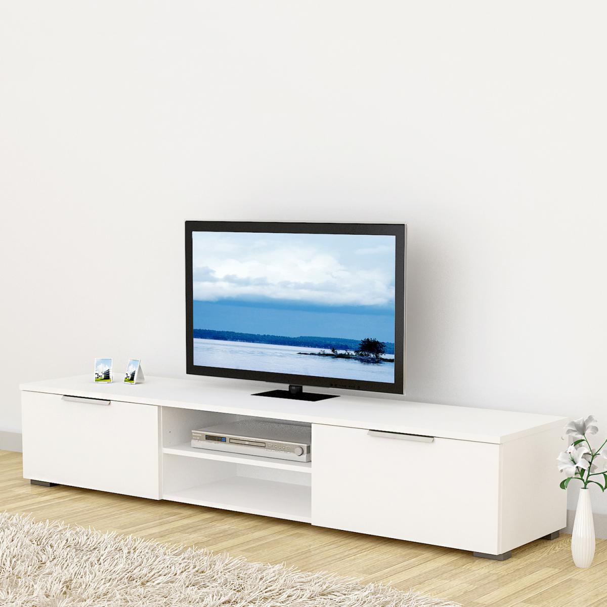 League TV Unit Two Drawers Two Shelf - White High Gloss