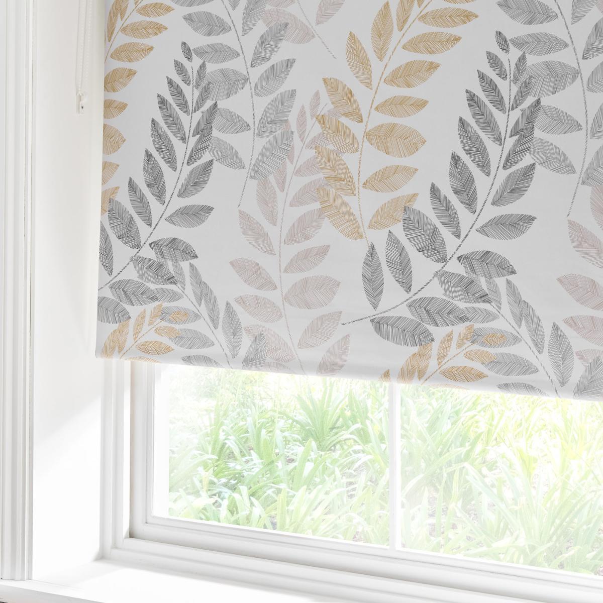 Leah Leaf Ochre Blackout Roller Blind Grey