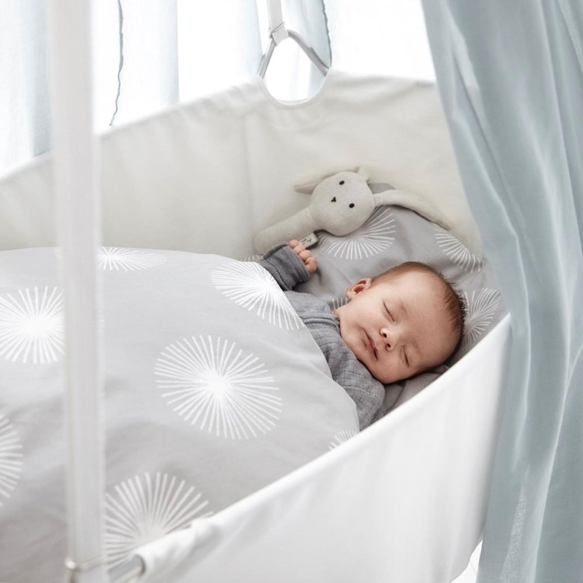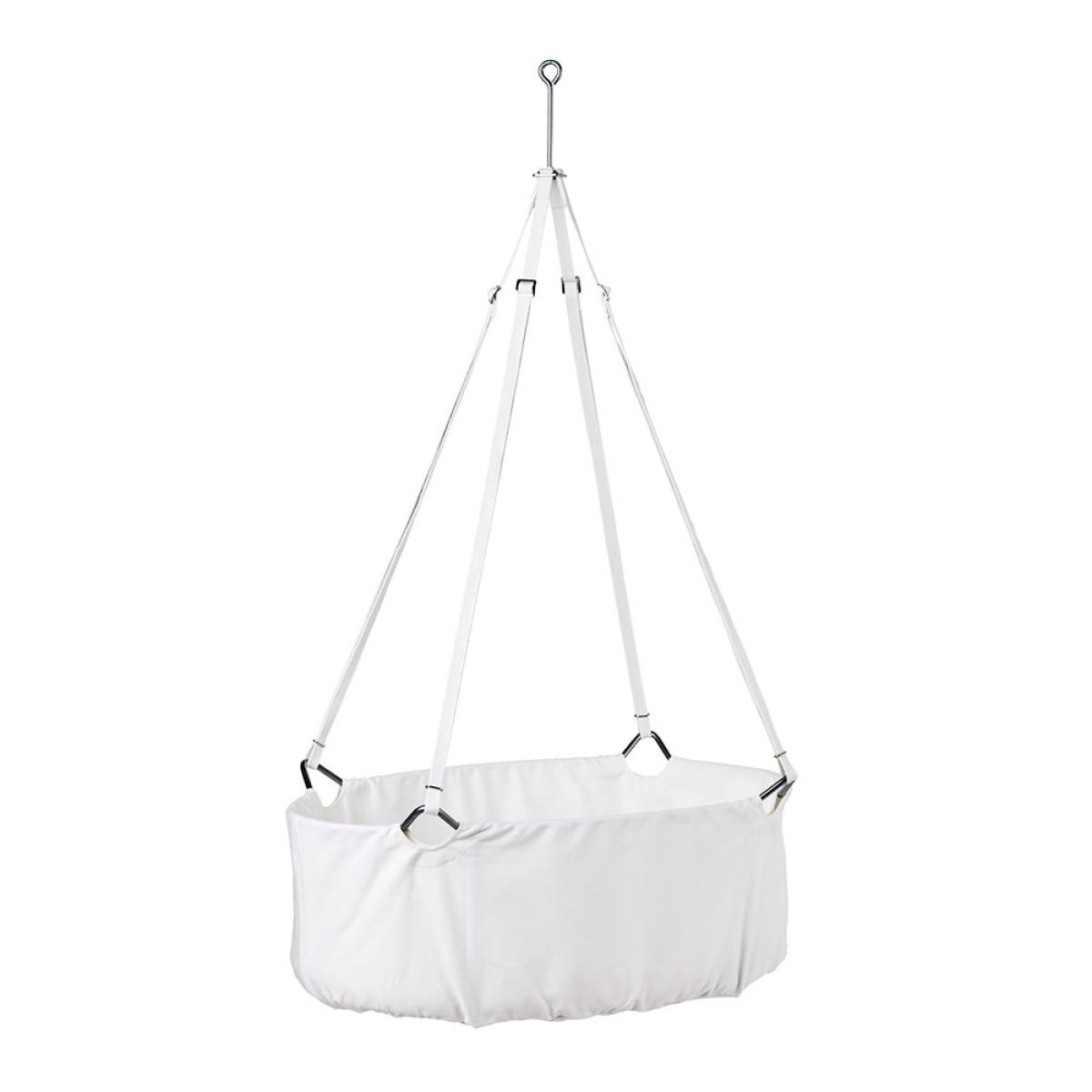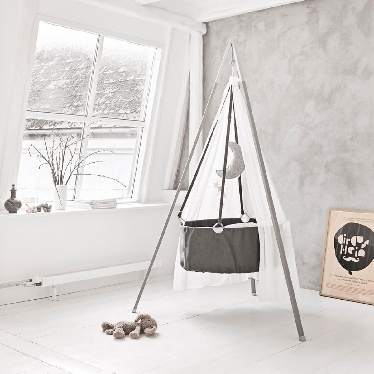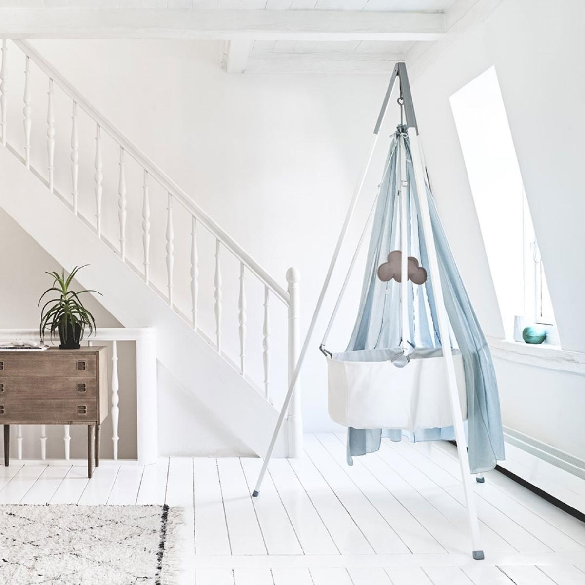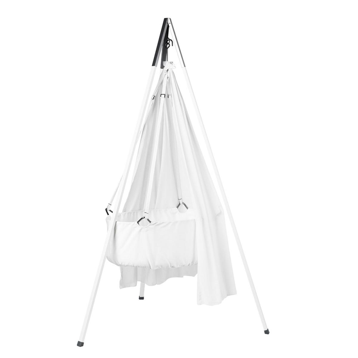Perfect for all newborn babies, the Leander Hanging Baby Cradle with Mattress and stand ensures a soothing nights sleep for your little one. The cradle provides a soft and secure environment with calming gliding movements simulating the motion inside mum's tum. The cradles motion stimulates your babies sense of balance and helps to strengthen their development while they snooze. The baby cradle and mattress are made from pure cotton and both are washable at 60 degrees. The set can be suspended on a hook from one single point making it easy to change sheets, move and clean or hang it on the stand that comes included! Available in a choice of colours, with a canopy and matching bedding available separately, create an adorable haven so your baby (and hopefully you) can get some well earned rest!.