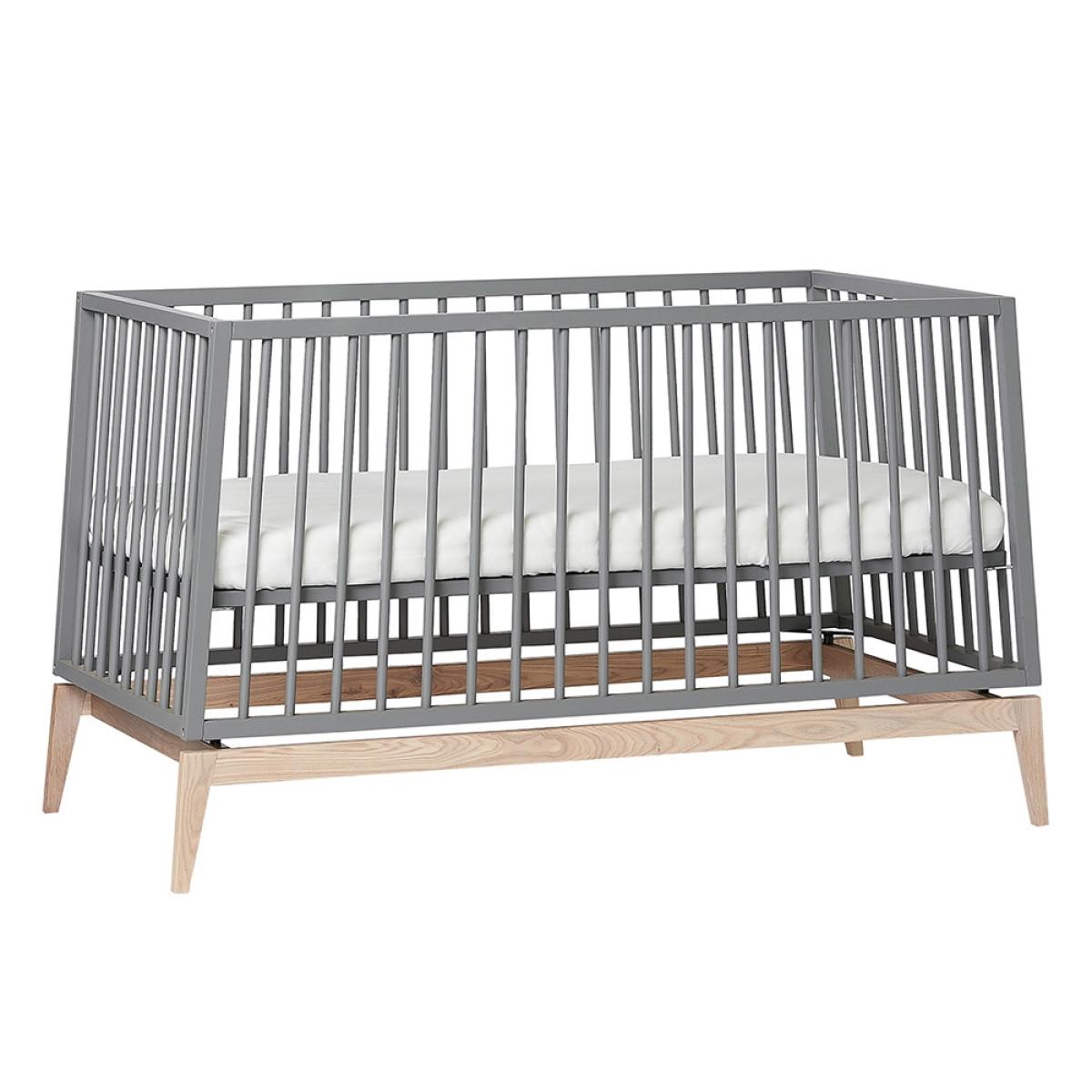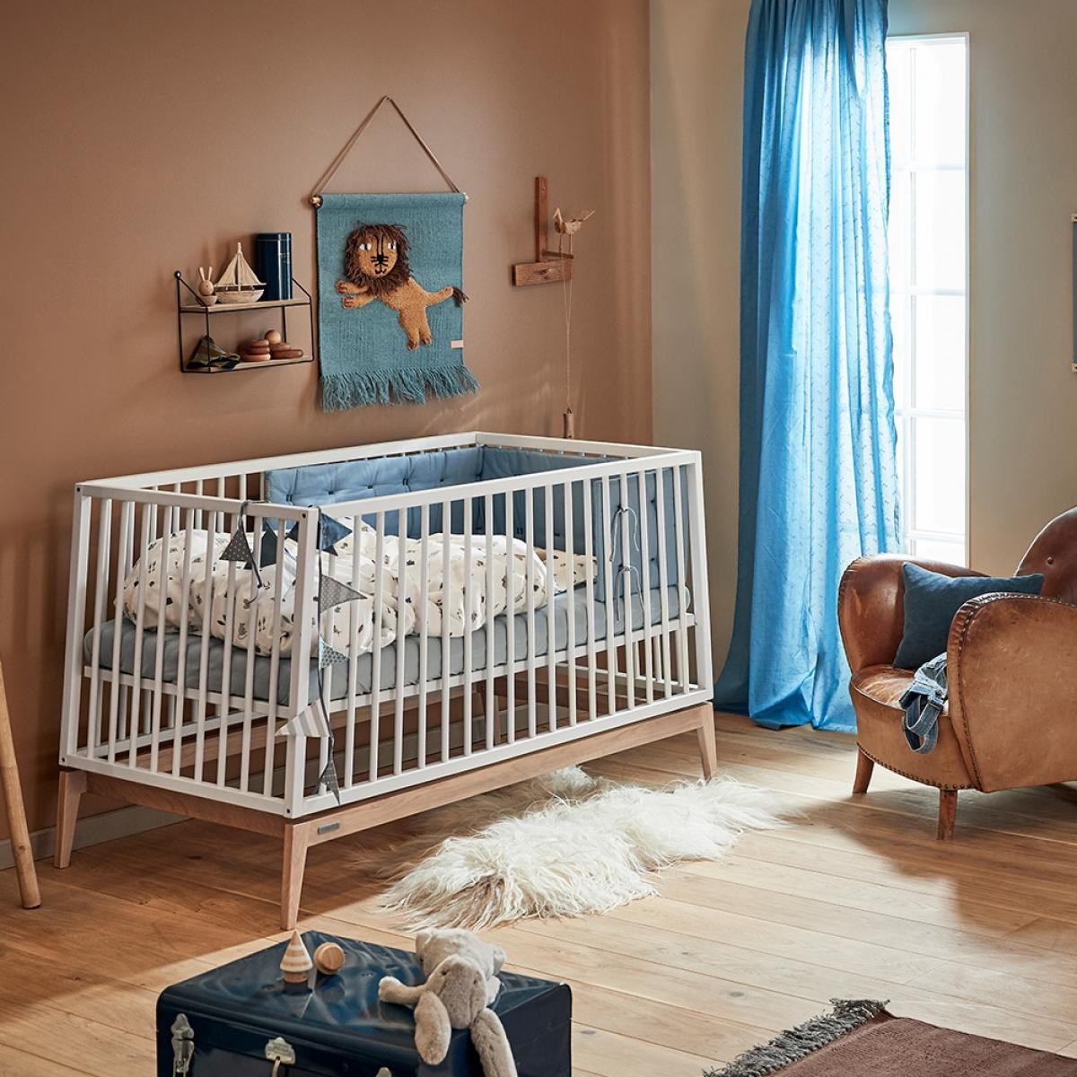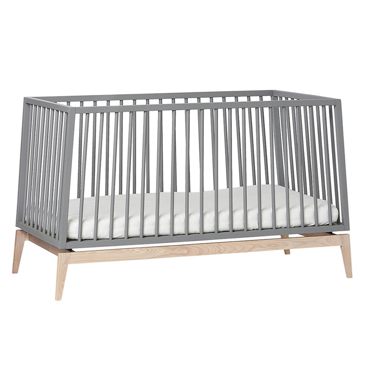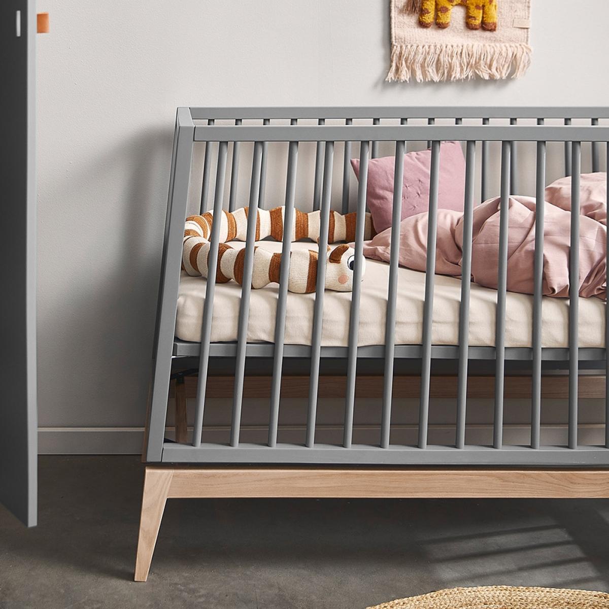 The Leander Luna Baby Cot Bed will be a beautiful addition to your nursery, available in either white or grey with gorgeous lacquered beech legs it is sure to fit into any decor to create a calm and tranquil sanctuary for your little one. Taking it's name from the moon, your shining little star will have many peaceful nights of slumber in this charming Luna cot. The cot base is adjustable in two heights, so can adapt as your little one grows (not to mention save your back from stooping during the first few weeks!) When your little one starts to become inquisitive, holding themselves up against the bars you can lower the height. Thanks to the solid construction & ingenious design the cot will grow and adapt alongside your child, you can remove the side to create a cosy sofa for your little one to sit and read their favourite book or a comfy spot to play.