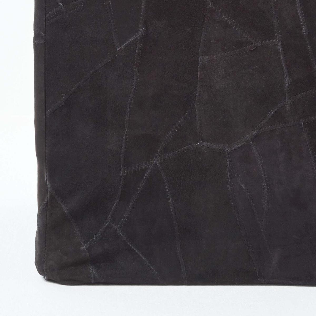 Leather and Suede Black Patchwork Cube Pouffe - Black