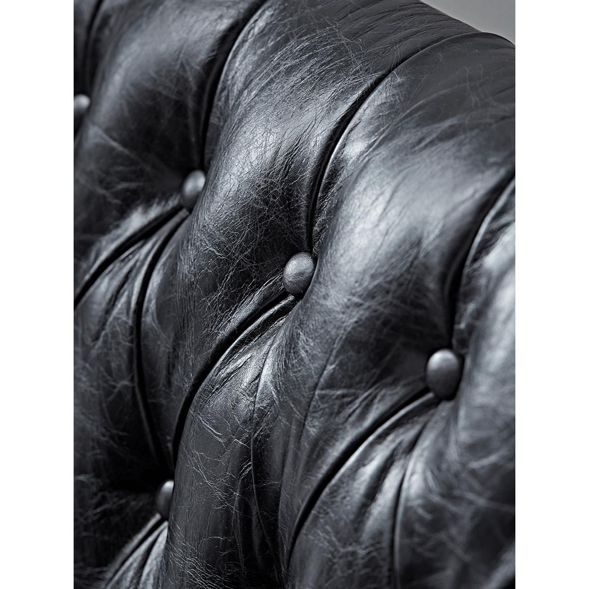 Our Leather Buttoned Sofa has a timeless design which would transit easily between a classic or a contemporary home. A fixed buttoned back and stately shaped arms set a luxe tone, whilst a slender frame and legs pare back beautifully. The traditional upholstery detail of a stud trim lines the full frame, here in contemporary chrome, which in contrast to the rich toned leather makes for a striking finish. Two sumputously filled cushions form the seat to this most generous and comfortable sofa, with all the qualities of a statement piece. See our. Leather Buttoned Armchair. For the companion armchair.