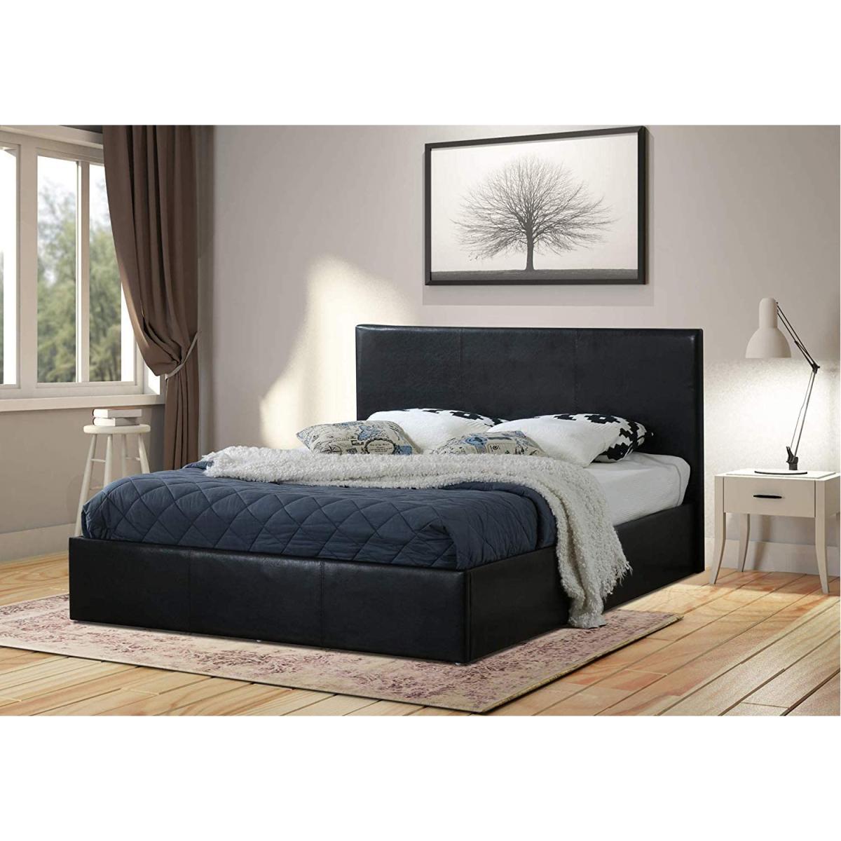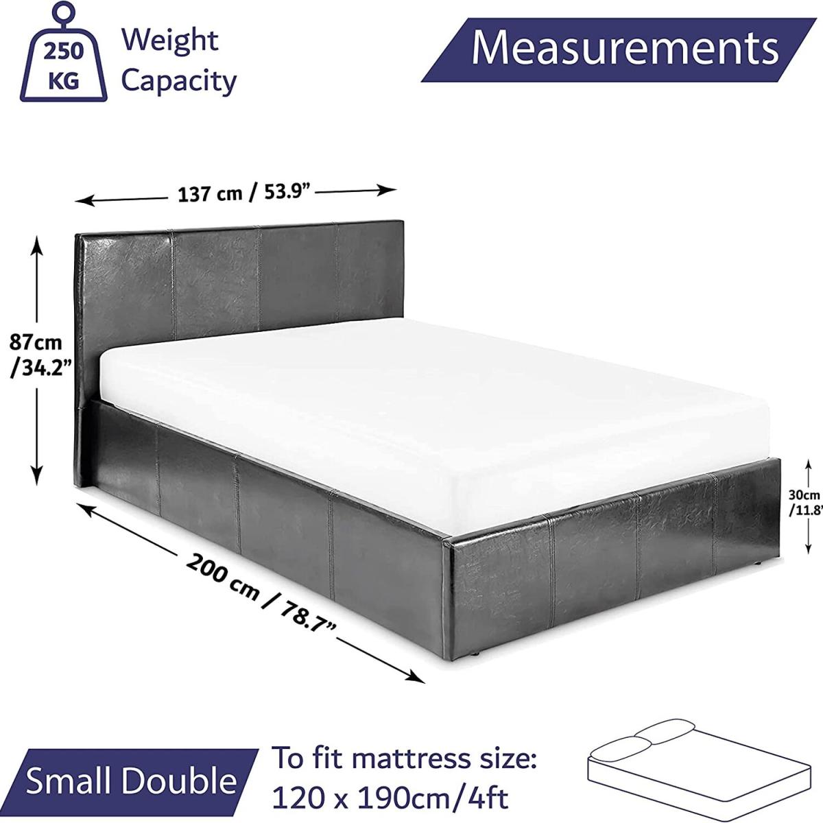 Black leather storage bed frame upholstered in a beautiful soft touch faux leather with a stitched headboard. Under bed storage compartment with huge holding capacity, twin gas lift arms front opening. An ideal piece of bedroom furniture for any interior, sleek black design lets you sleep in style. Easy access gas-assisted lifting arms for use by all ages. Comfortable padded headboard, sides and footboard for both comfort and styling. Durable strong steel internal frame frame with centre support legs, and sprung wooden slats to absorb the weight. Pocket & Memory Foam Mattress Highest comfort premium hybrid mattress - Thick 16cm up to 660 independant pocket springs mould to the body. High-density foam +memory foam 2cm quilted top layer. Medium Firm- British Standard Certified. Breathable hypoallergenic cool touch cover. Anti-dust + Anti-mite