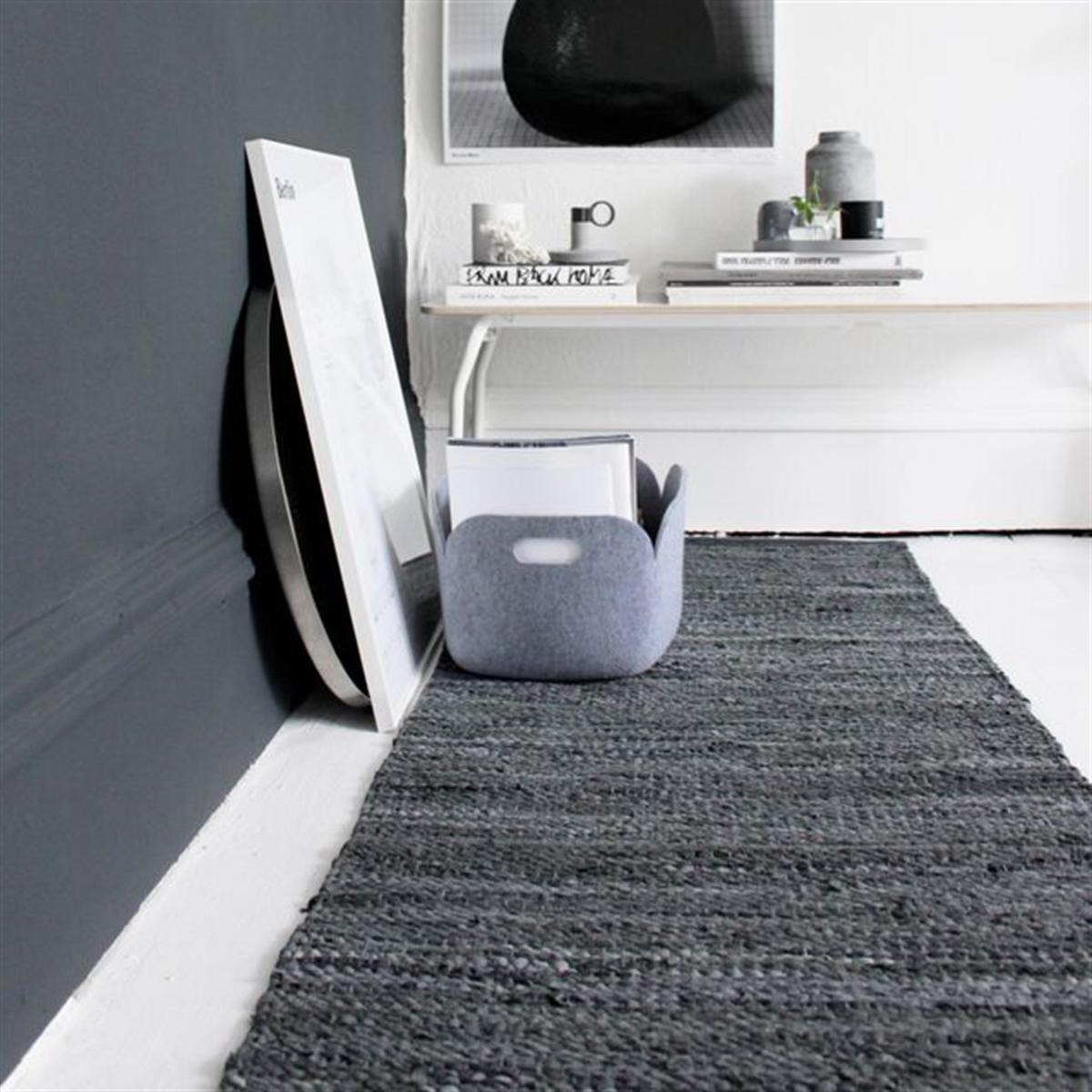 The hand-woven black Leather rug 65x135 cm from Rug Solid, with its striking, minimalistic design, works just as well at the office as it does at home. The modest design allows this rug to match well with most furnishing styles. The leather used in the creation of the rug consists of scraps of leather left over from the fashion industry. Rug Solid's distinctive hand-woven leather rugs don't spare any expense on the material or the creation process. The high quality is obvious from the first time you hold the rug in your hand.