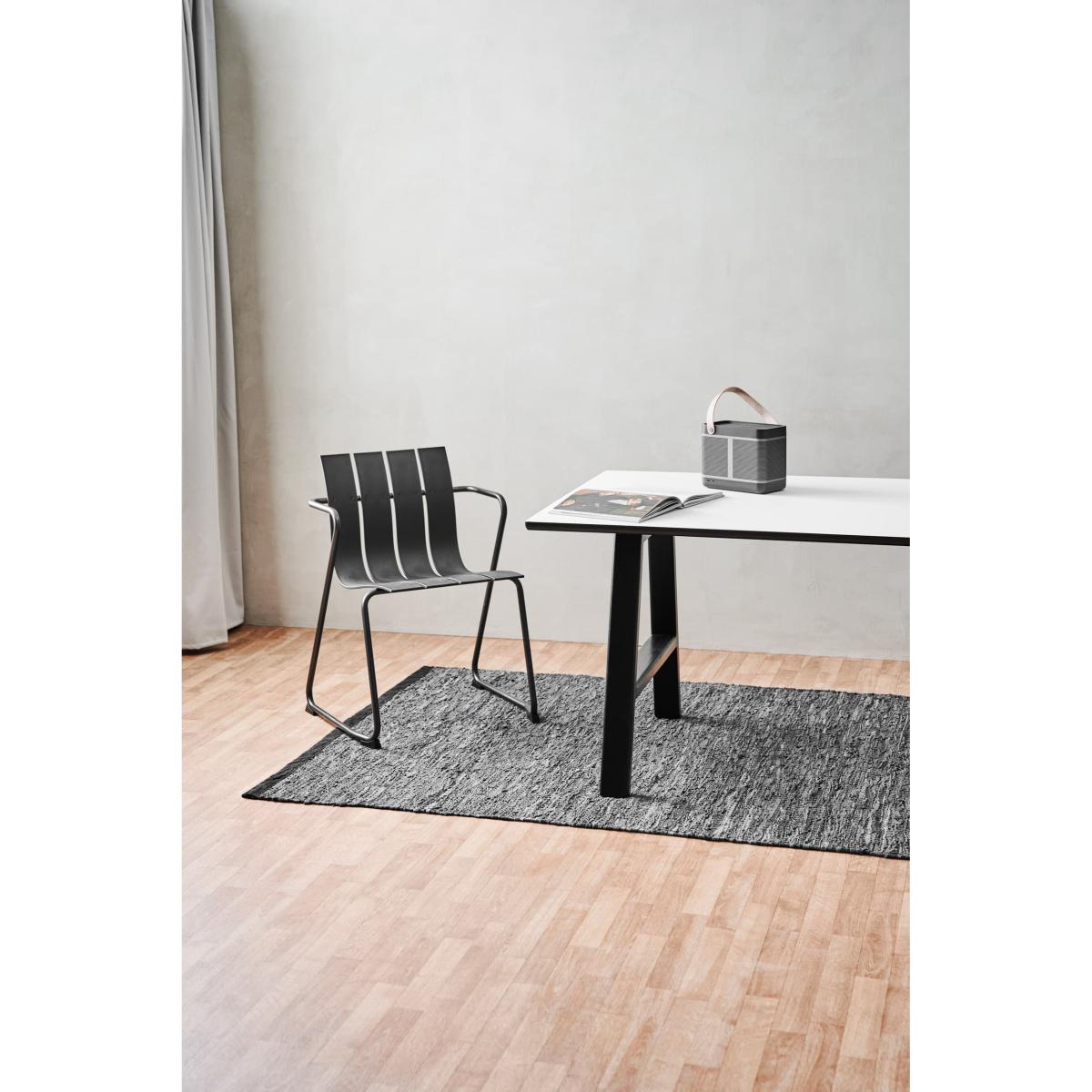 An attractive, minimalist design in genuine leather, this Leather rug 75x300 uses black leather scraps from the fashion industry, which are carefully selected, cut and woven together by hand. The leather has different colour nuances that give the rug its handsome appearance. This time-consuming manufacturing process forms the basis of a particularly tight weave, and gives each unique rug a high quality feel.