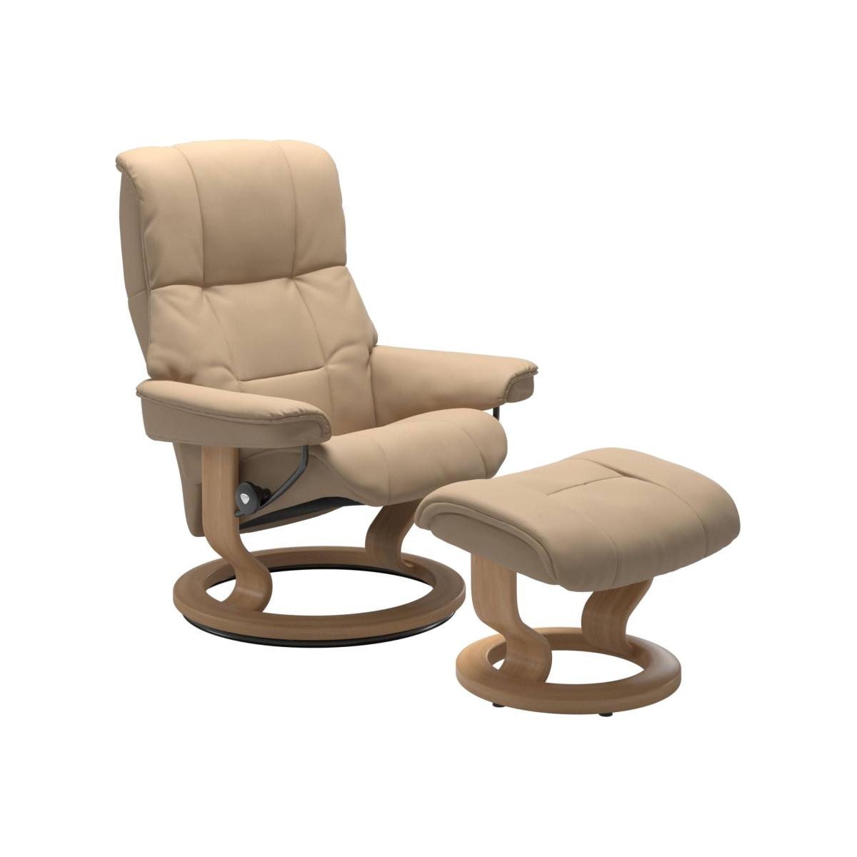 Leather Stressless Quickship Mayfair Medium Chair & Stool Classic Base in Paloma Beige