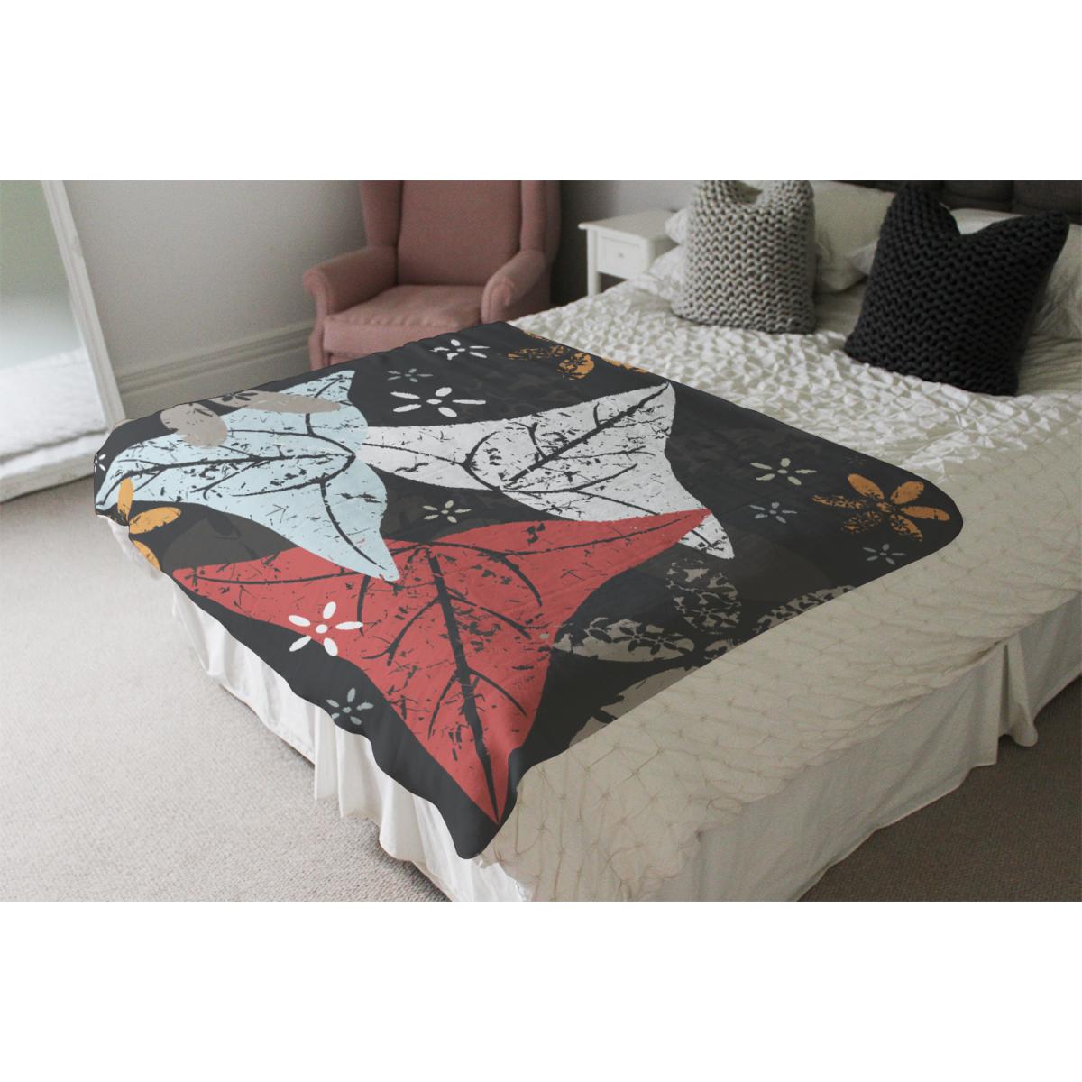 Leaves And Flowers Autumn Pattern Blanket - Black