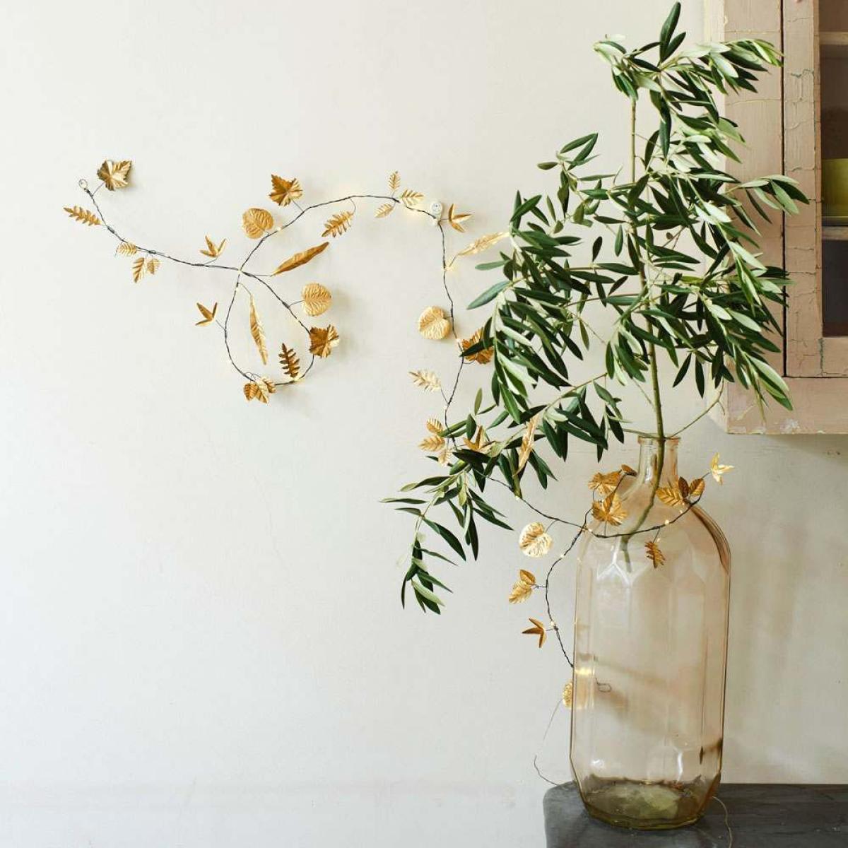 Our leaves string lights are structured with wire making them easily manipulated when decorating a mantel piece, wooden beam or picture frame. Adorned with metallic gold leaves, these delightful fairy lights possess a glamorous flair.