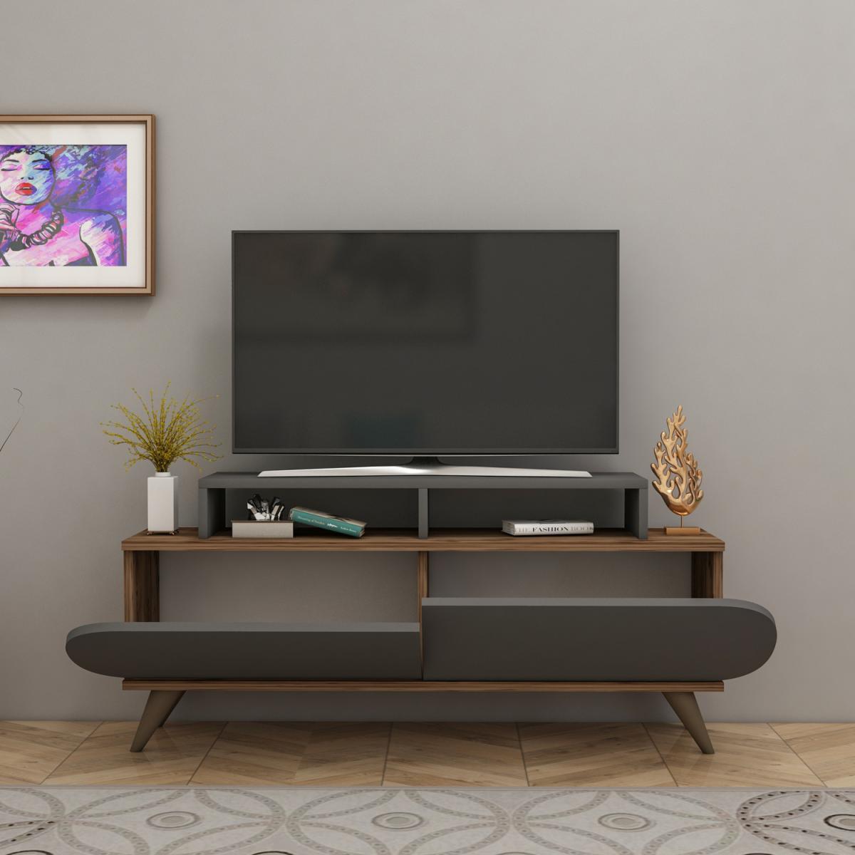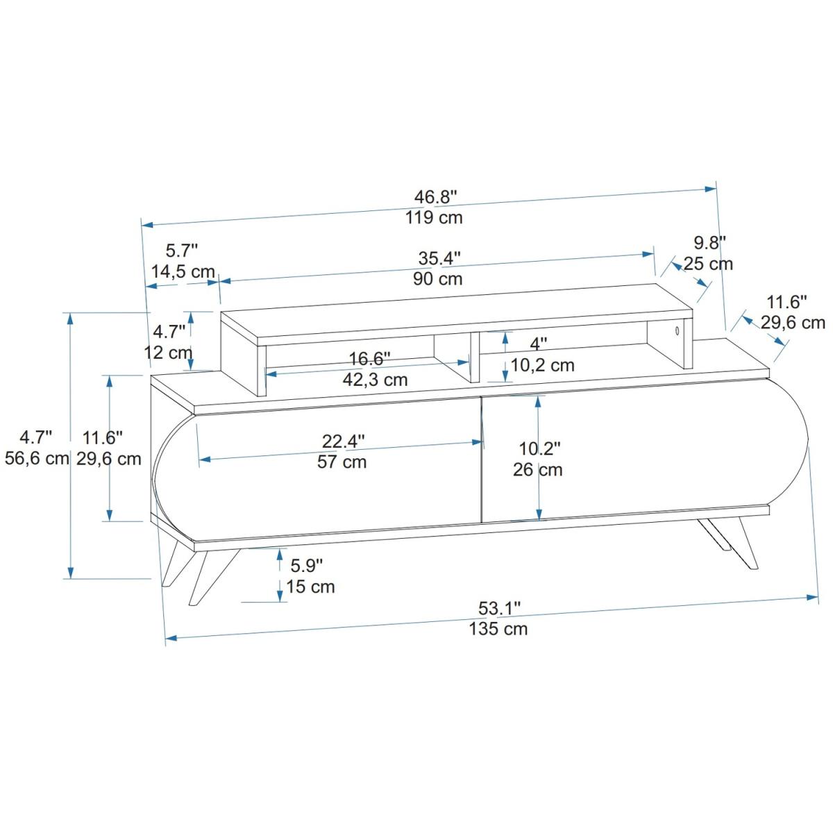 MATERIAL The TV stand is made of an 18 mm thick quality melamine-coated particleboard. The manufactured wood surface is water-resistant to some extent and the edges are banded with PVC edge banding tape. First-class assemblyinstallation hardware and accessories are used. Our products are produced from certified quality raw materials that do not contain carcinogenic substances and comply with European Union health norms. CLEANING You can clean your furniture with a dry cloth. Avoid prolonged contact of your product with moisture and water. ASSEMBLY The product will be delivered to the customer in the original package as disassembled. It is designed to be assembled by the customer using a power drill and screwdriver. Assembly instruction and installation hardware are included in the package. For fast and error-free installation, product parts are numbered with stickers in accordance with the assembly guide.