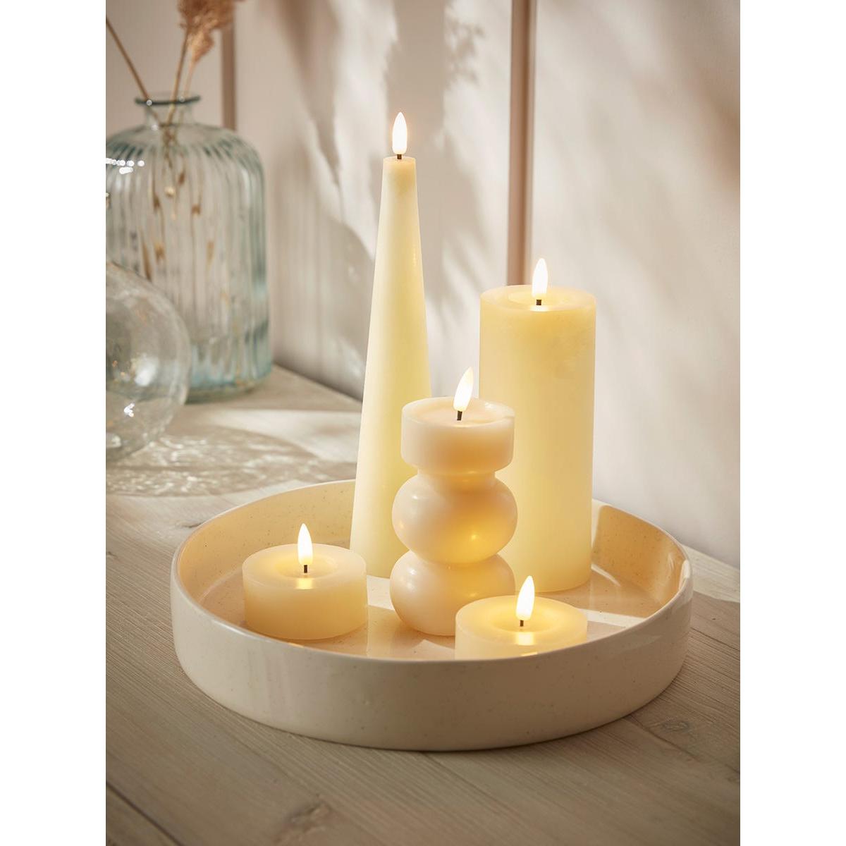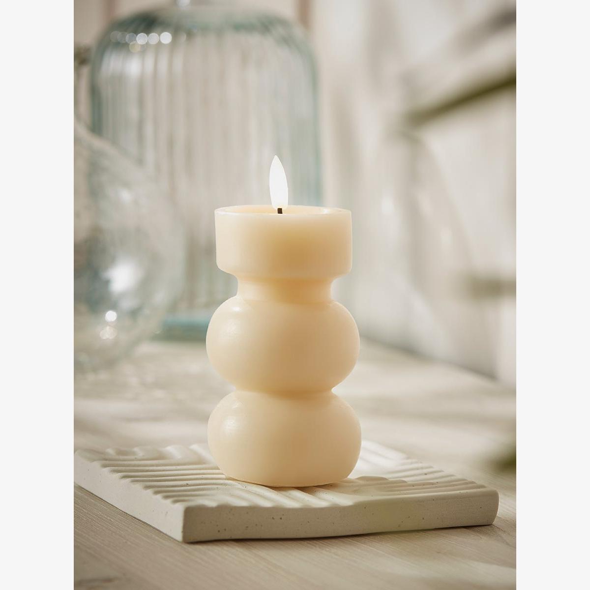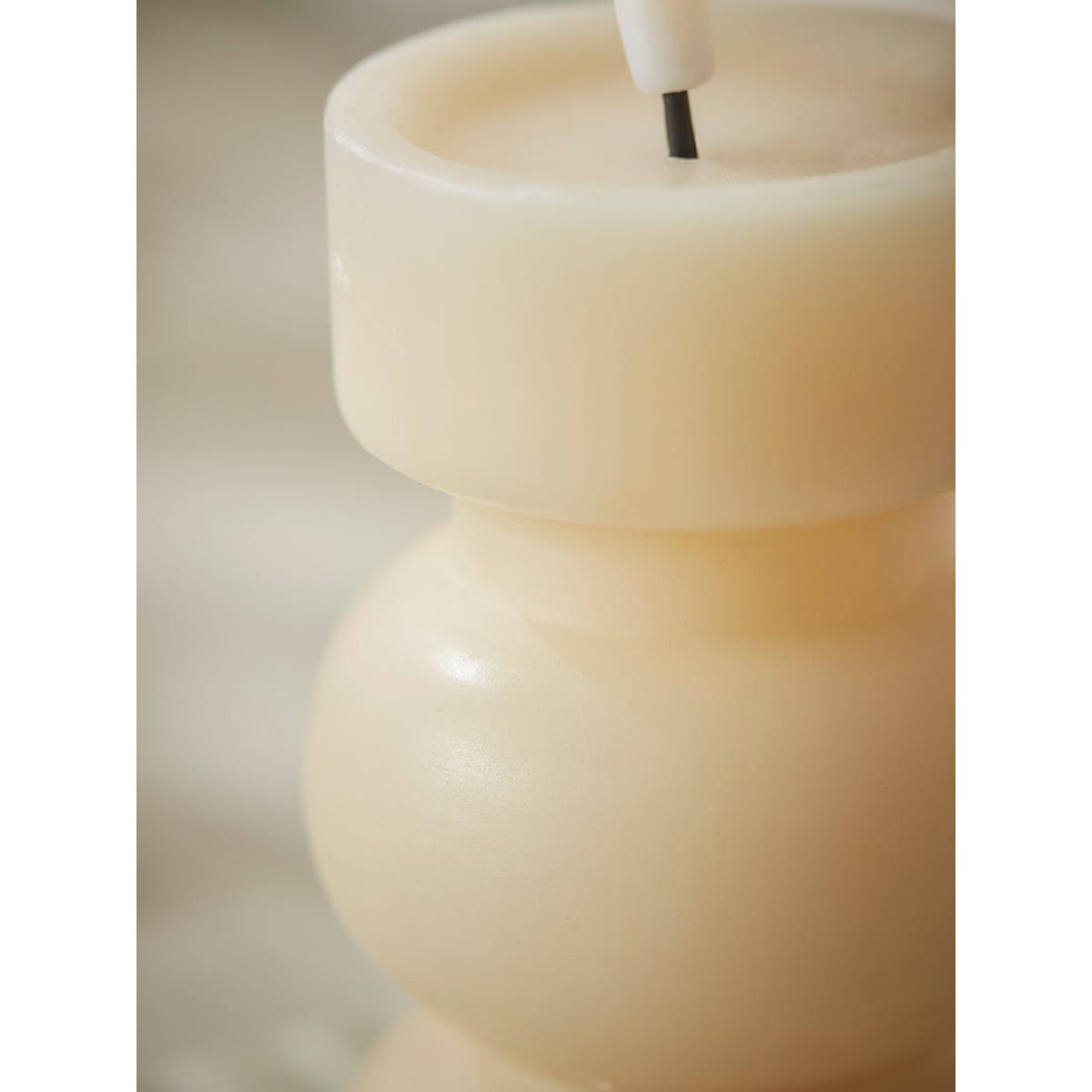 Create a cosy and warm atmosphere with our LED abstract faux candle. Unique in design, this modern shape complements the neutral tone, making it ideal for many styles. The convincing flickering effect and real wax finish makes it perfect for any setting.  Also available in cinnamon.