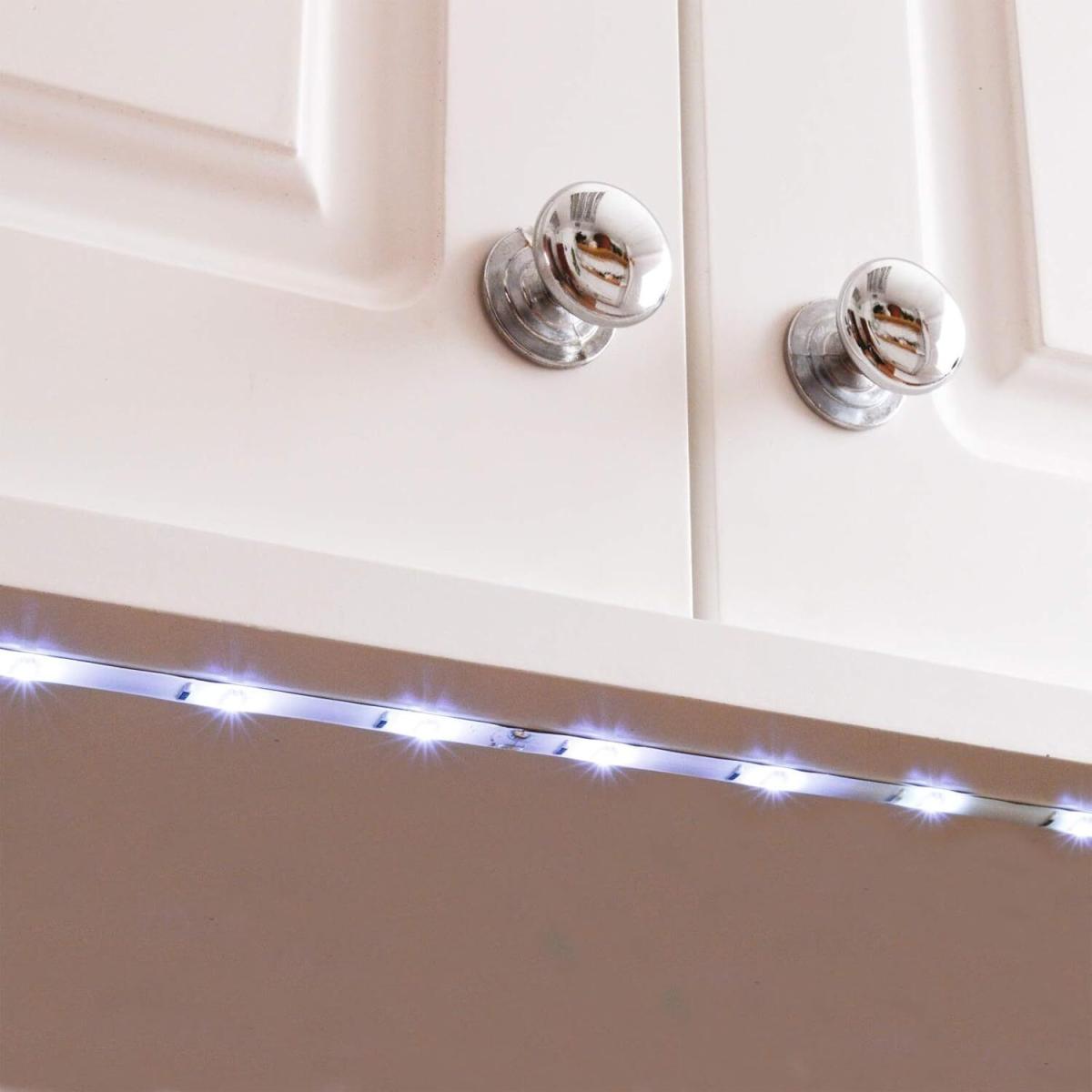 Add some super-bright LED light virtually anywhere with these self-adhesive strip lights. Featuring 18 LEDs bulbs, the light strip is battery powered, so there are no unsightly wires and no need for a power supply. Sticking easily and securely to any surface and completely flexible, the strip can even go round corners or curves. Extremely versatile, the lights can be used in so many ways, from beneath a kitchen wall unit or inside a display cabinet to in a shed, workshop or even a caravan.