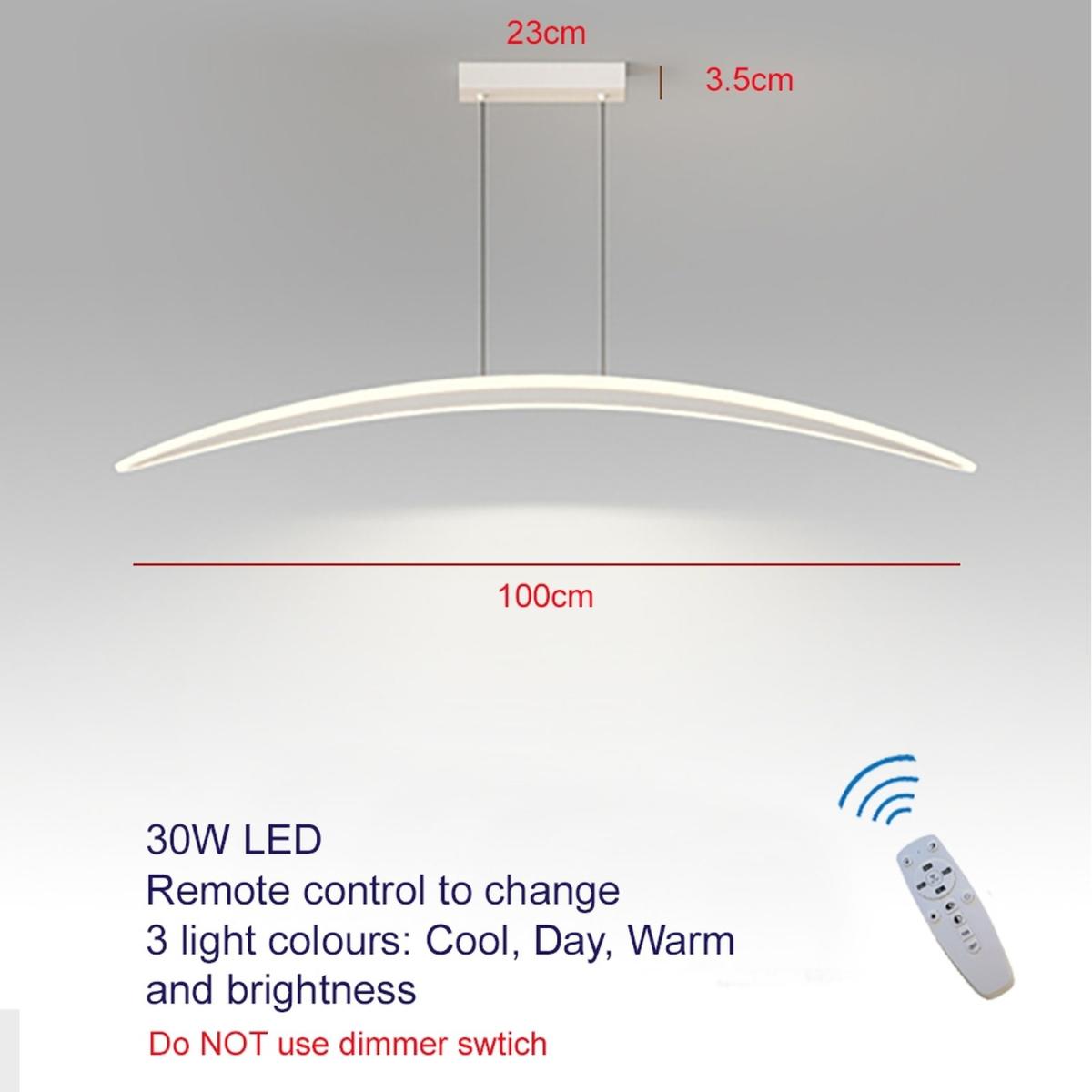 Overall Height: 150cm Adjustable. Body Lenght: 100cm. Body Width: 10cm. Ceiling Fitting Length: 23cm. Ceiling Fitting Height: 3.5cm. Ceiling Fitting Width:5cm30W LEDWeight: 2 kgs. Rooms suitable for: Living Room, Bedroom, Dining Room, Home Office/Study, Conservatory