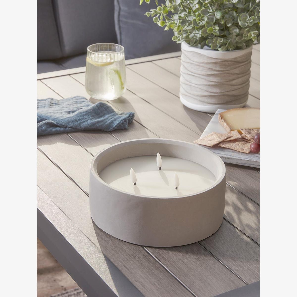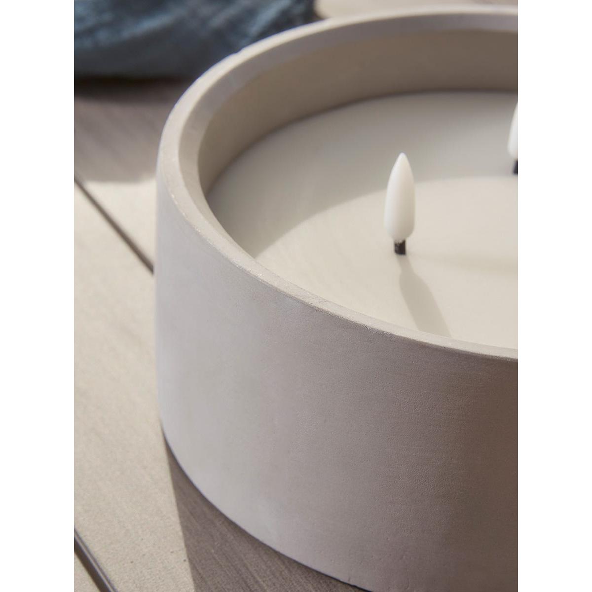 I love the large LED concrete candle for its modern, minimalist aesthetic and versatility. Its understated concrete finish pairs well with contemporary, industrial, and Scandinavian interiors, adding a touch of understated elegance without overwhelming the space. It works particularly well on coffee tables, sideboards, or open shelving where it can serve as both a decorative piece and a cosy, ambient light source. Practical styling tips include grouping it with other textured accessories like ceramics or greenery to create visual interest, or using it as a focal point on a neutral tabletop. Its substantial size also makes it suitable for larger settings, providing a subtle, sophisticated glow without the worries of traditional candles burning down-ideal for those seeking a safe, stylish alternative.