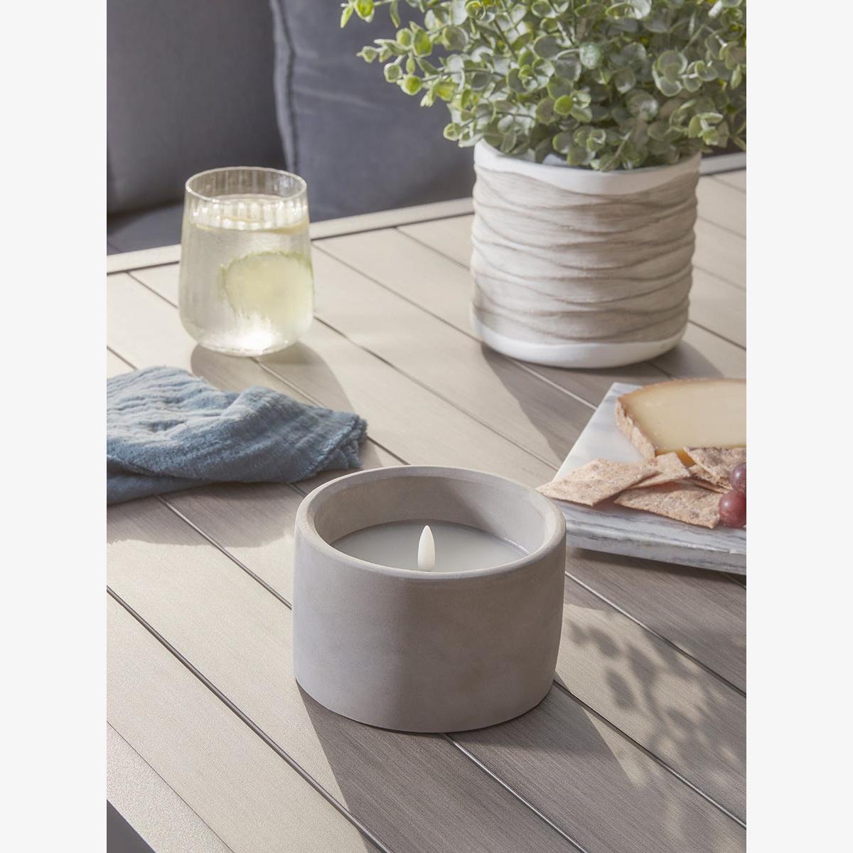 I love this little LED concrete candle for its clean, modern aesthetic and tactile finish. Its minimalist look makes it versatile, suitable for contemporary, industrial, or even Scandinavian interiors. It works well on coffee tables, sideboards, or open shelving, adding a subtle glow without overwhelming the space. For practical styling, consider pairing it with natural textures like linen or wood, and group it with other candles or decorative objects to create layered interest. Its neutral tone ensures it complements visual palettes ranging from cool greys to warm earthy colours, making it a simple yet effective accessory for enhancing everyday interiors.