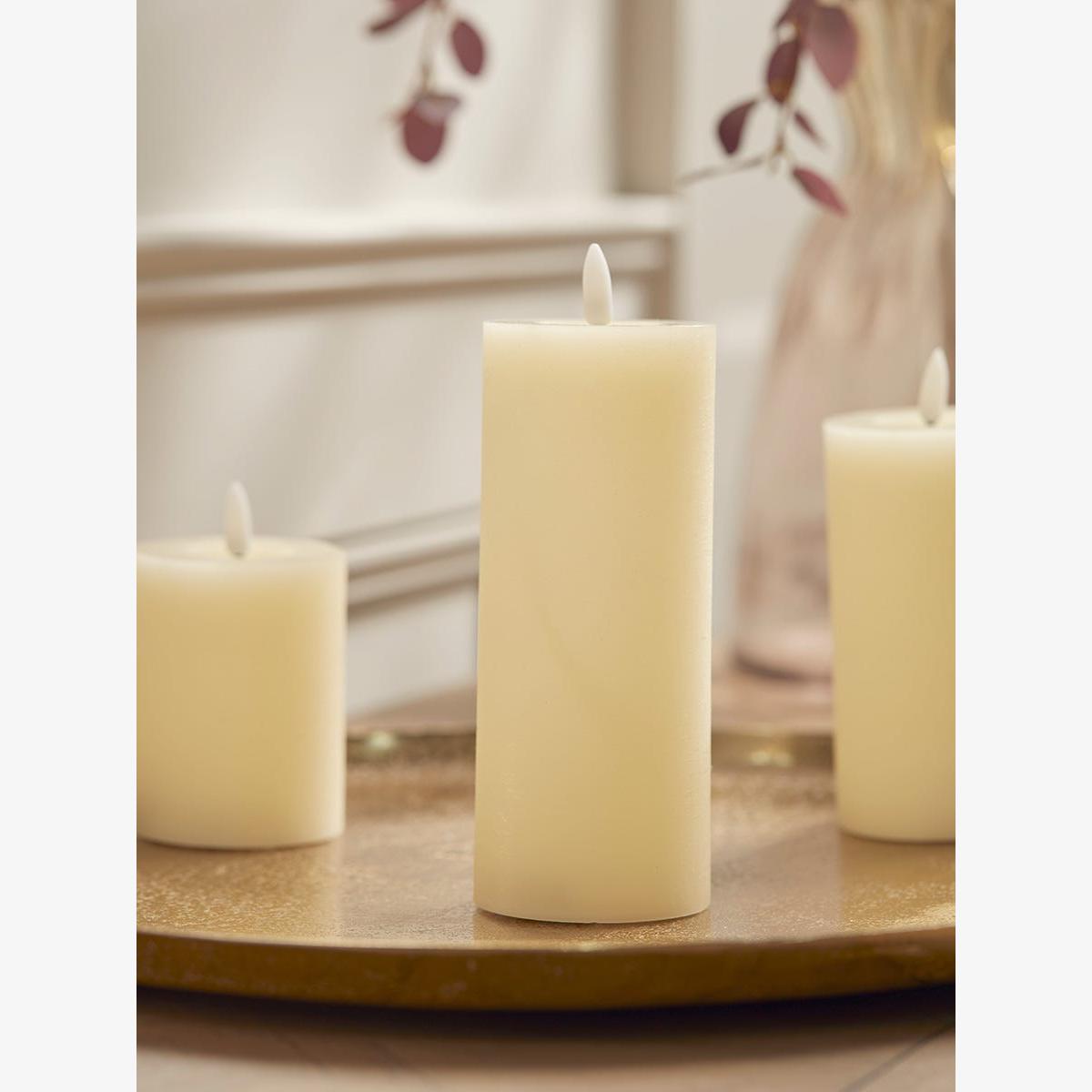 I love this medium LED faux candle for its versatility and realistic look, making it a practical choice for a variety of interiors. It works particularly well in contemporary or minimal settings where sleek, clean lines are key, but it also adds warmth to more eclectic or rustic spaces without the risk of burns or soot. Practical styling tips include grouping a few on a tray or mantel for visual impact, placing them alongside other natural elements like foliage or candles, or using them to create cosy ambient lighting in bedrooms or living rooms. Its size makes it perfect for both centrepieces and layered displays, offering a fuss-free way to add a cosy glow without the maintenance of real candles.