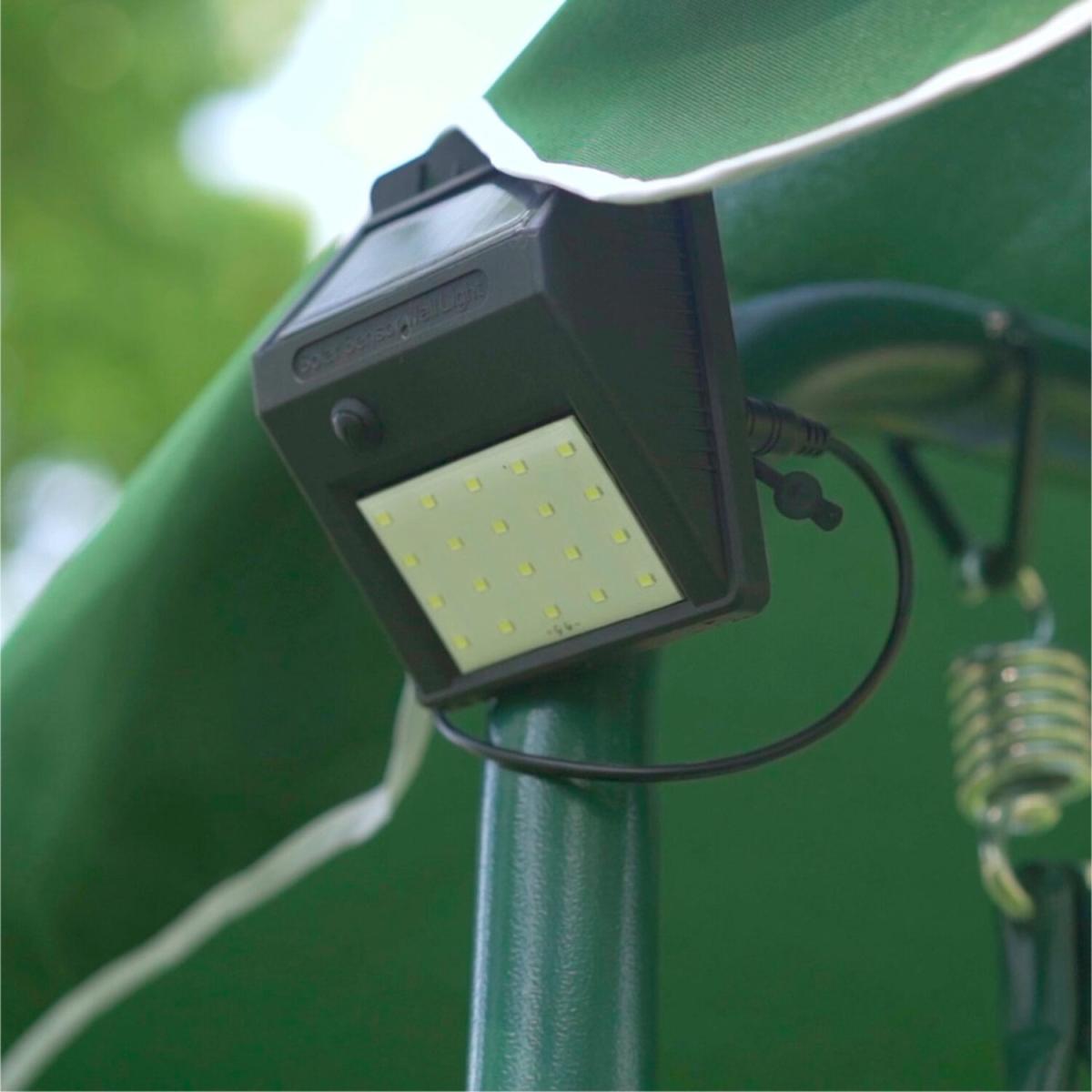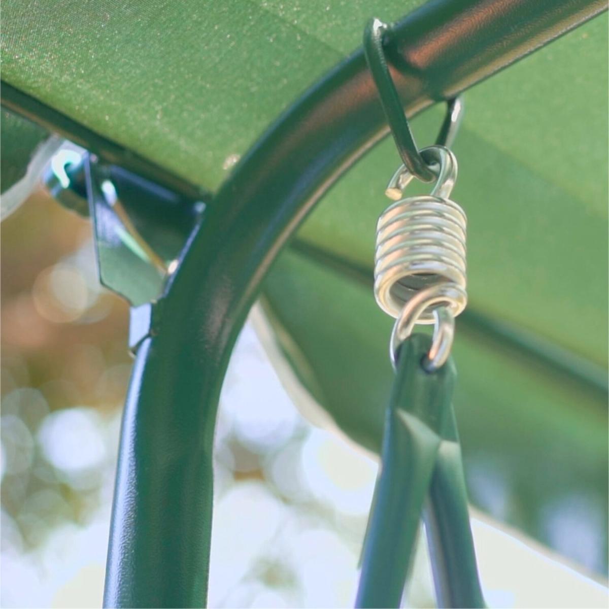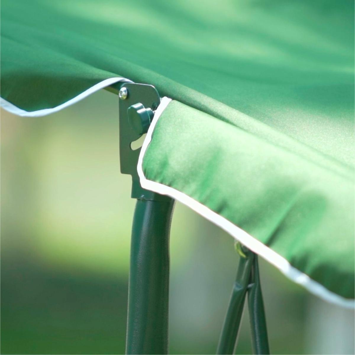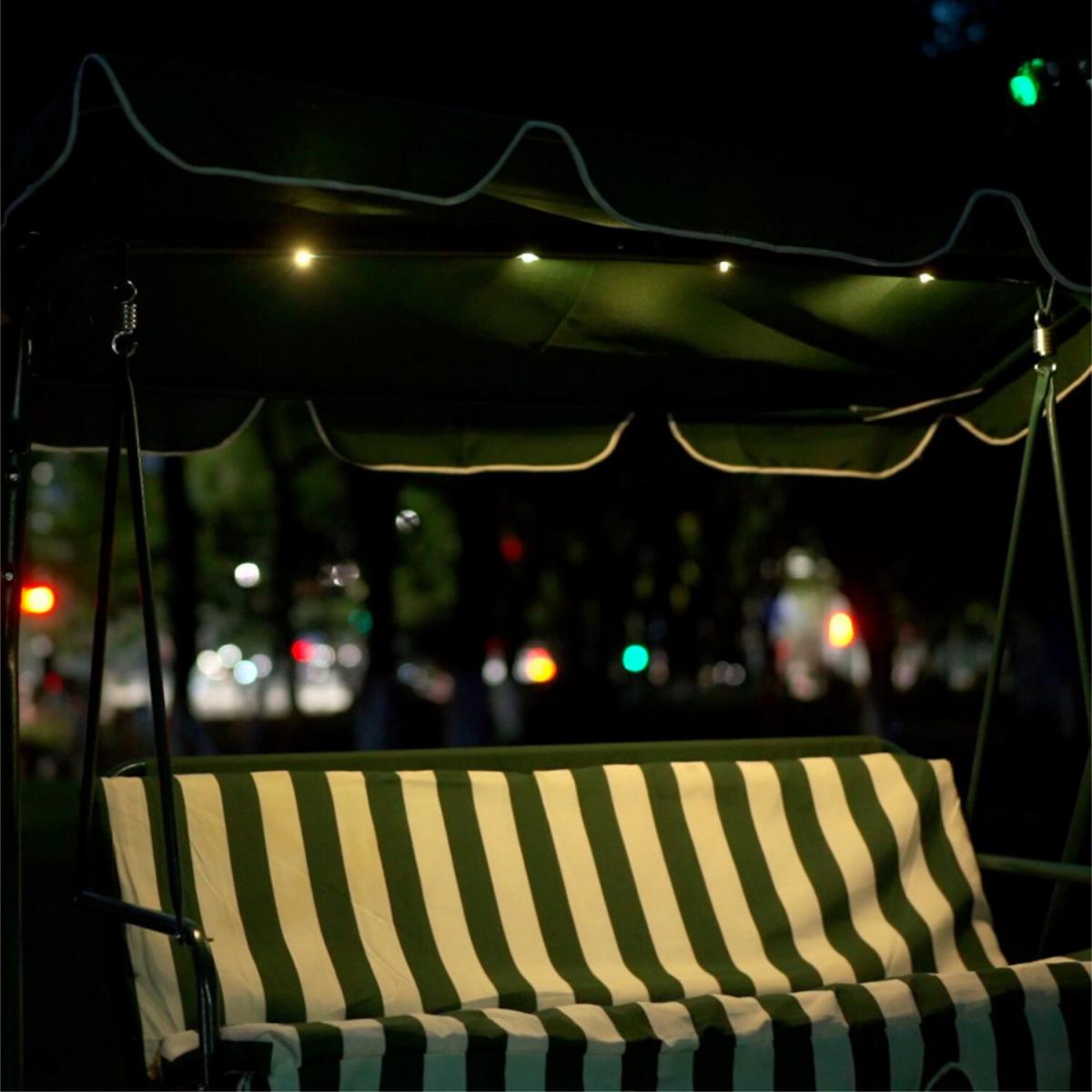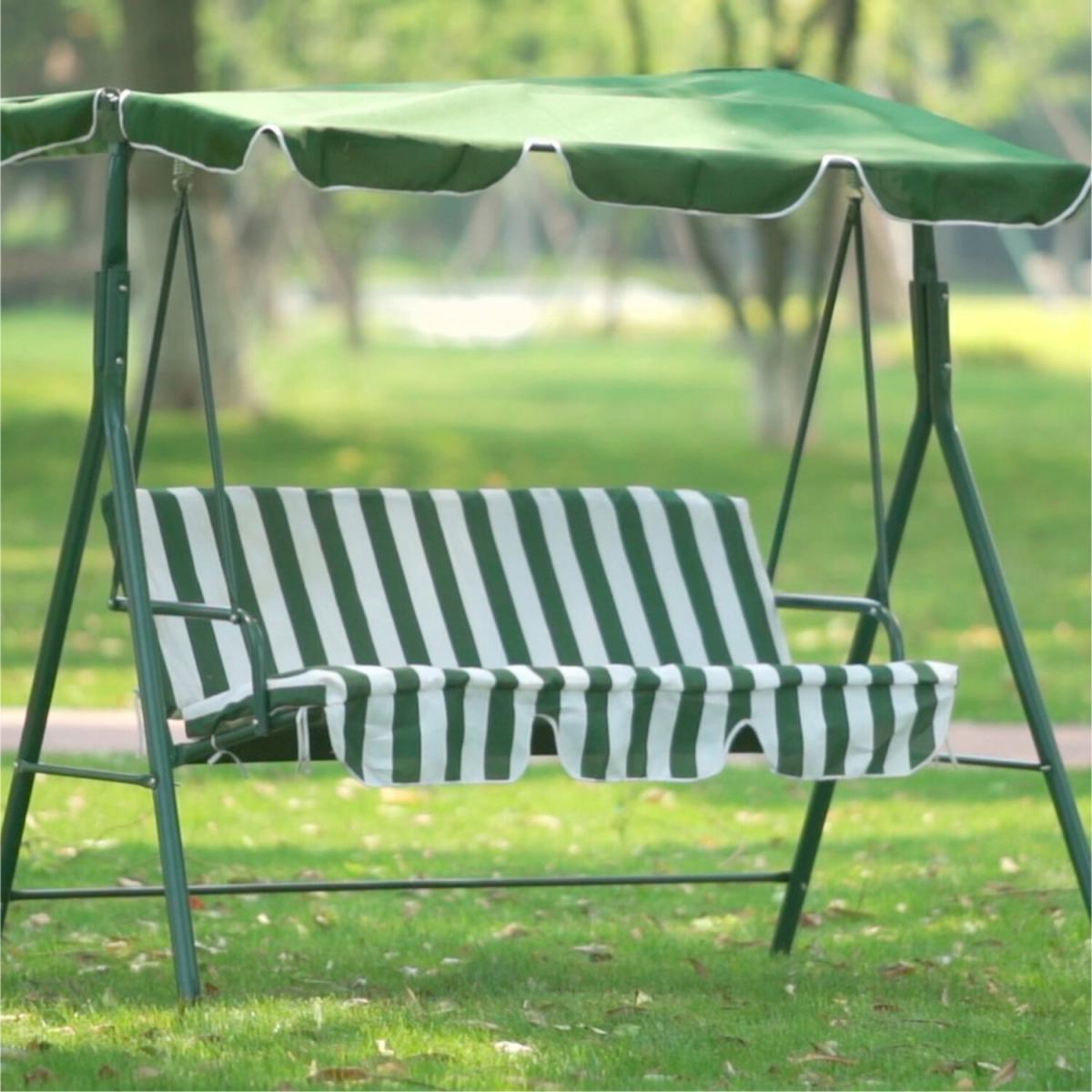 This swing bench chair is perfect for enjoying the beauty of the outdoors in your garden. With room for 3 people, this outdoor swing chair is made from durable strong and sturdy tubular steel framing. Sit in comfort with a luxury foam filled swing seat with a green and cream striped design. The seat comes with a polyester cover which is both resilient and quick drying. This swing seat also comes with LED lights to create an ambience during the evenings. The canopy is detachable so you can enjoy shade or sunshine whenever you wish. Some self-assembly is required with this product.