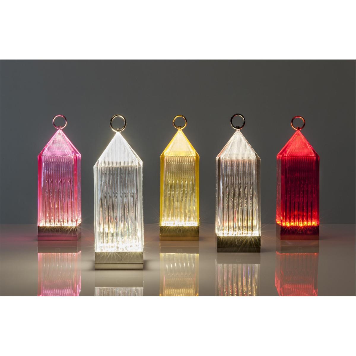 Make a statement in any space with this LED lantern from Kartell. Made from injection moulded transparent PMMA, this lantern takes the form of a classic portable lantern that charges when placed on the charging base. Designed by Fabio Novembre, this lantern is available in a range of trend driven hues and can be placed anywhere with a handy hanging ring.