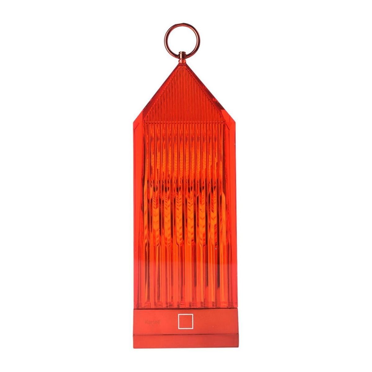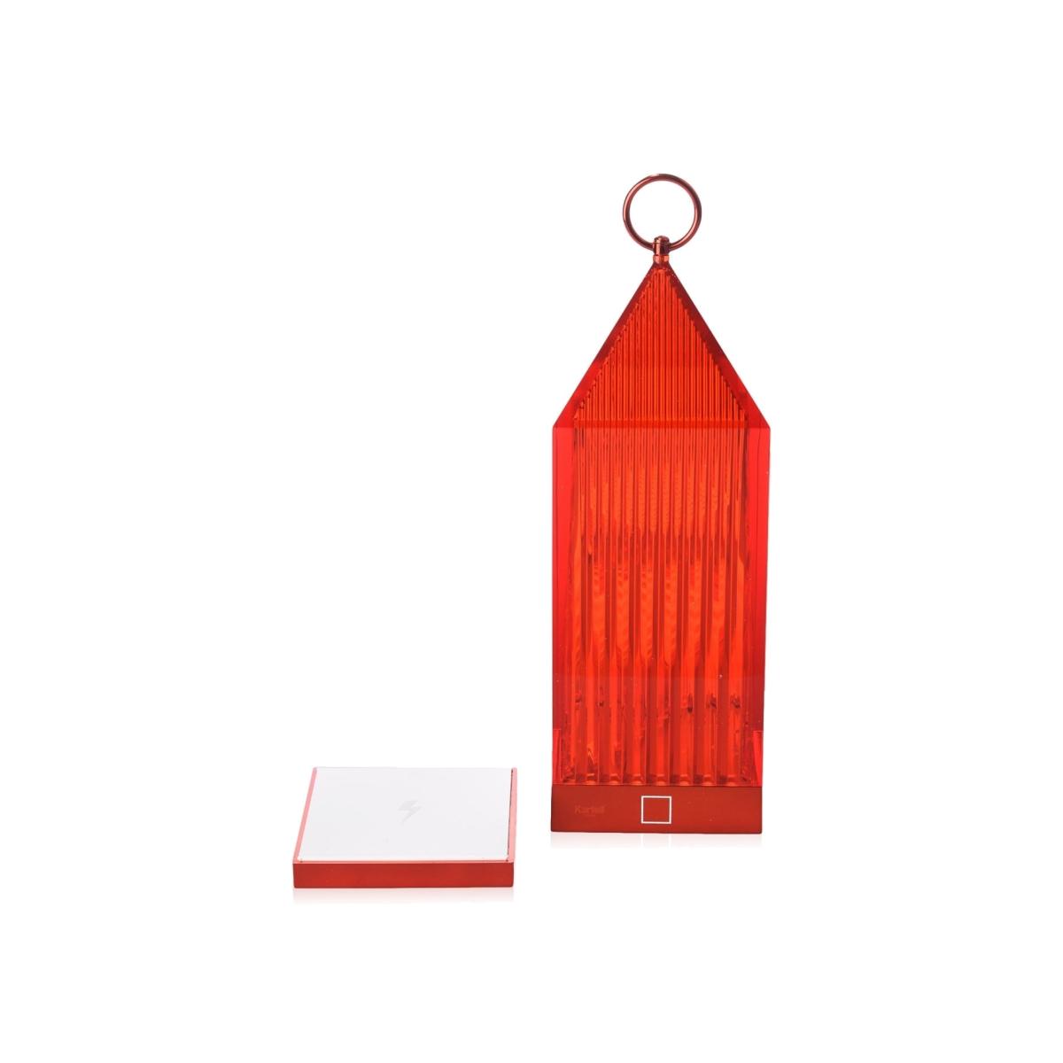 Make a statement in any space with this LED lantern from Kartell. Made from injection moulded transparent PMMA, this lantern takes the form of a classic portable lantern that charges when placed on the charging base. Designed by Fabio Novembre, this bright red lantern can be placed anywhere with a handy hanging ring.
