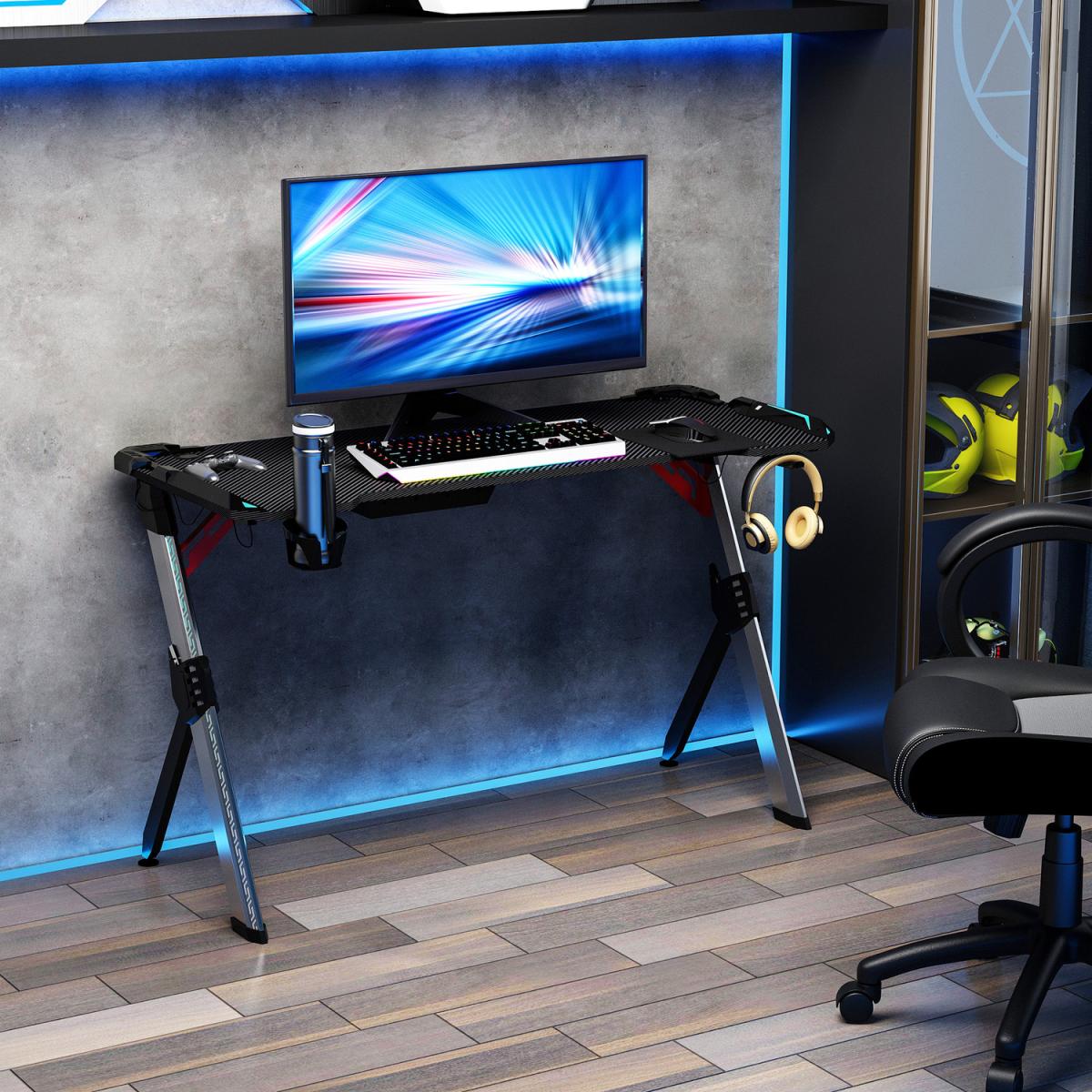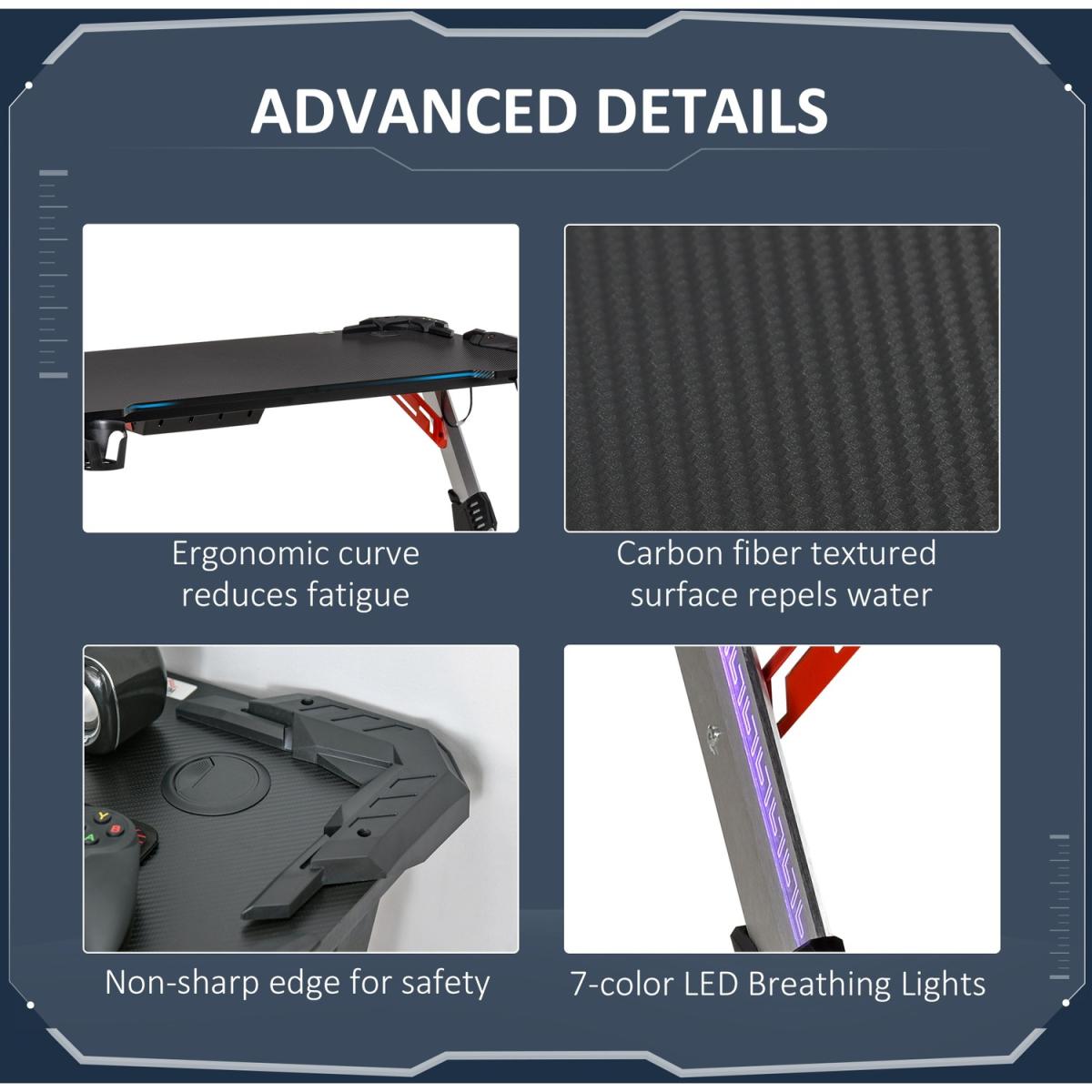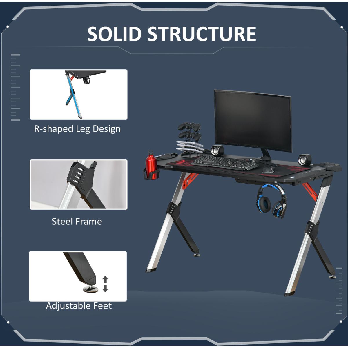 All dedicated gamers know the importance of a decent table. This year, do it the HOMCOM way with this impressive item in ergonomic design. The frame made from steel ensures a solid and tough core which won't be deformed or warp. It features an MDF work top with carbon fiber feel texture which is large enough for your consoles, screens, keyboard, and other devices. It is also equipped with a headphone hook, a cup holder and a plastic basket to keep your tabletop tidy as always.