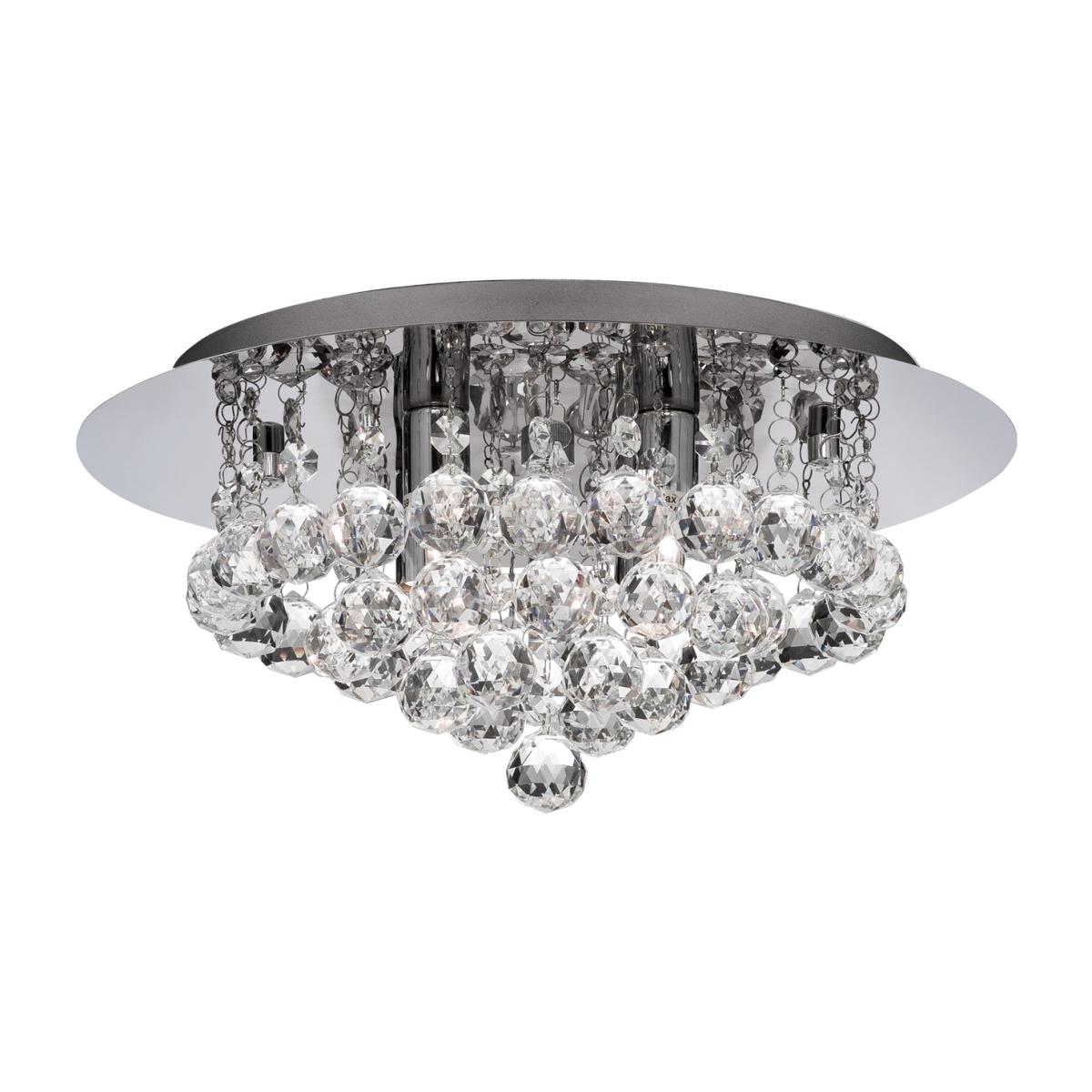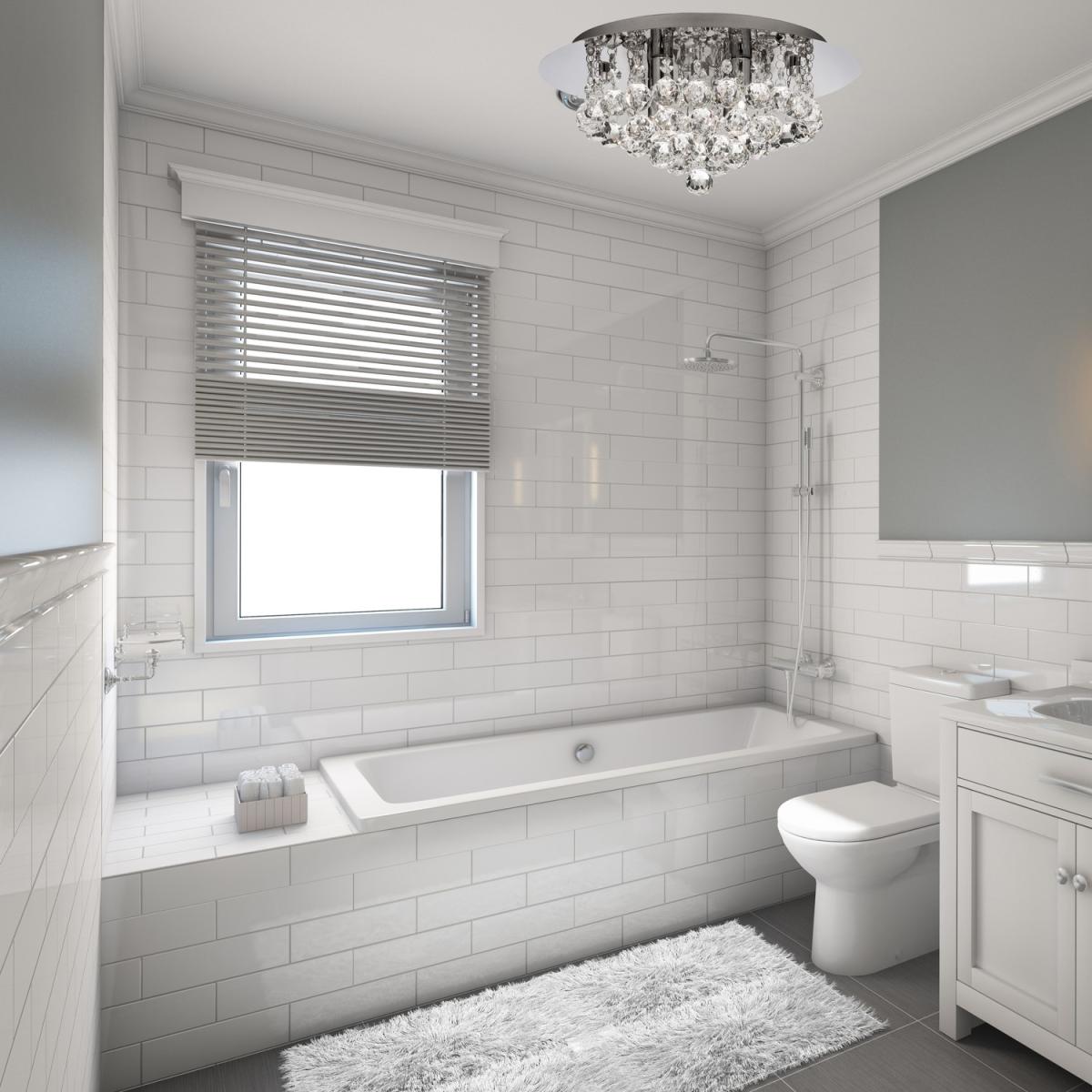 Dimensions H17.5cm x W35 x D17.5cm. Add some glamour and sophistication to your bathroom with the Hanna bathroom light. There are 4 lights surrounded by silver pendants. The fitting sits flush to the ceiling meaning it is perfect for homes with lower ceilings. Features. Bathroom light fitting4 light ceiling light Chrome and crystal finish. Flush fitting Modern design Assembly required..
