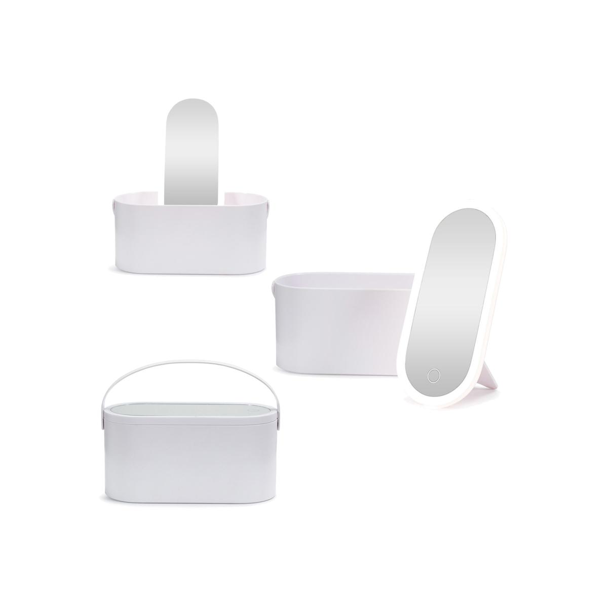 Take your glam on the road. Whether for a holiday, a dreaded commute, or top ups throughout the day. Having a rechargeable LED makeup mirror and carry case means youll never miss a mismatch or makeup mistake because of poor train lighting. Switch between natural, warm and cool light. Integrated LED light. Charging time 120 mins. Glow time 120 mins. USB wired charging. Dimensions 11.4cm x 24cm x 10.5cm. Make every minute of the morning count.