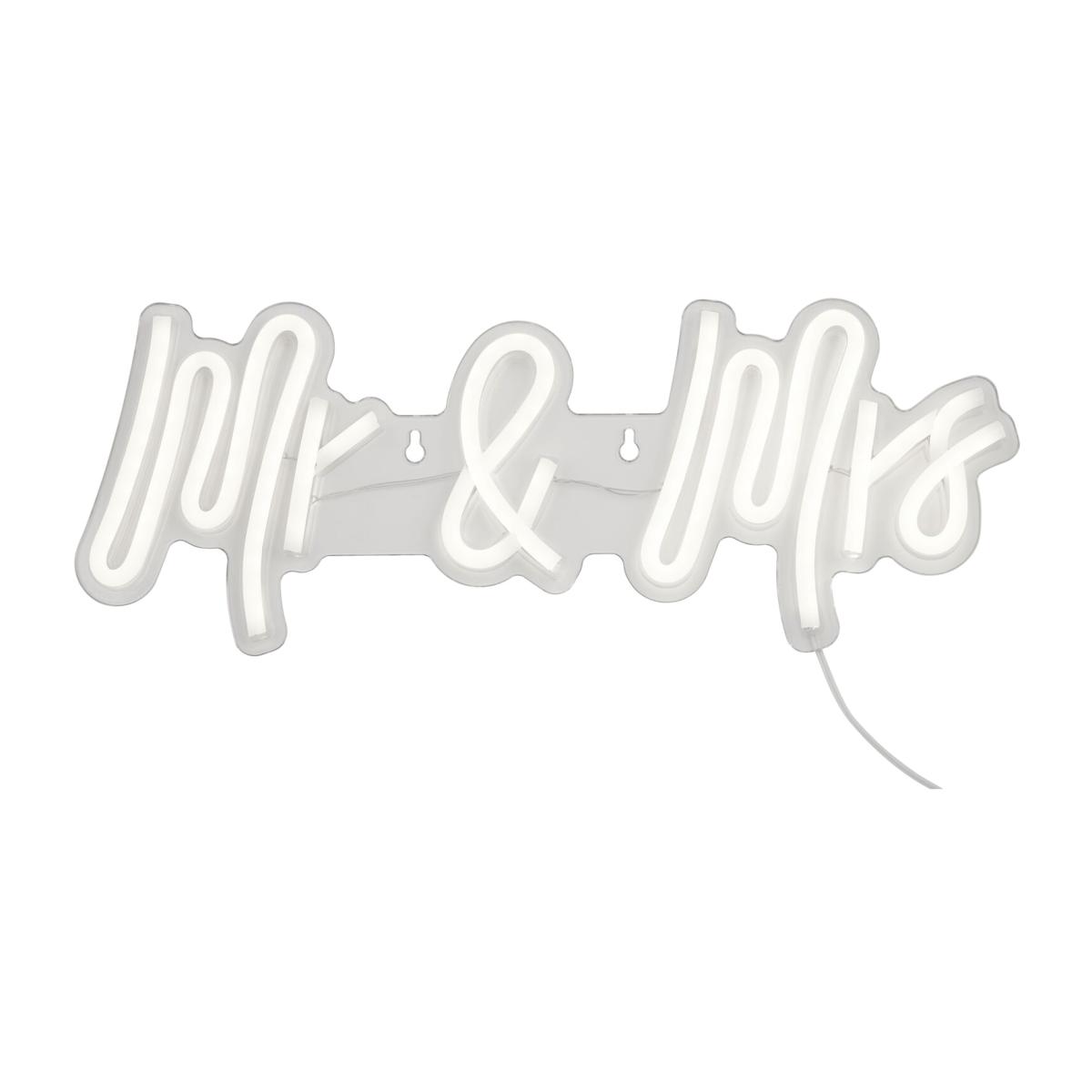 Make your special occasions more memorable and enchanting with this LED Mr Mrs Neon Sign. Made from high-quality acrylic and silicone, this radiant wall light in white and clear not only adds celebratory charm to any room, but also serves as a captivating focal point. With its integrated LED lighting, it enhances the overall decor, creating a luminous ambiance that elevates a space.