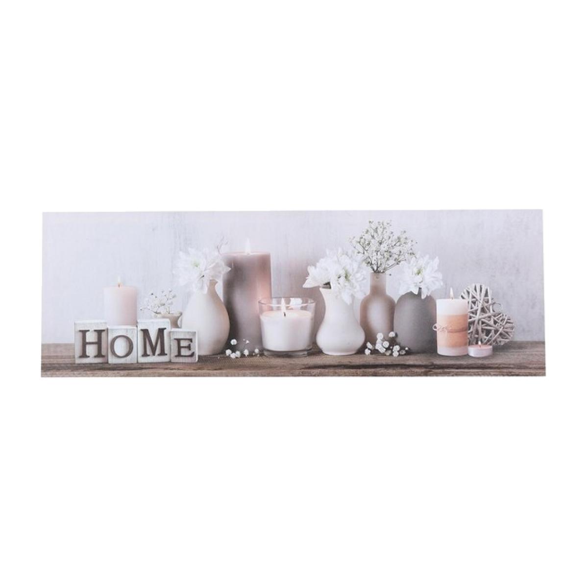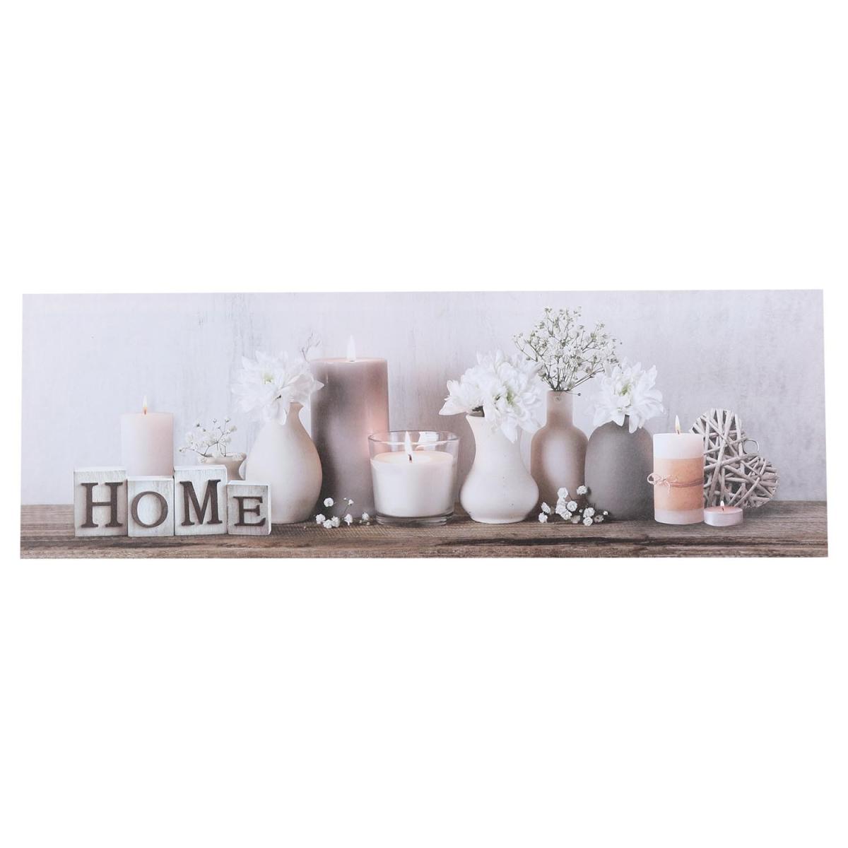 Create a warm and cosy atmosphere in your home with this beautiful LED Neutral Home Canvas. Printed with a candle and jar design in a soft, neutral brown and cream tone, this canvas is finished with LEDs in the candle flames to gently light up your room to create a chilled environment. Quick and easy to hang, it's the perfect choice for the living room or bedroom.