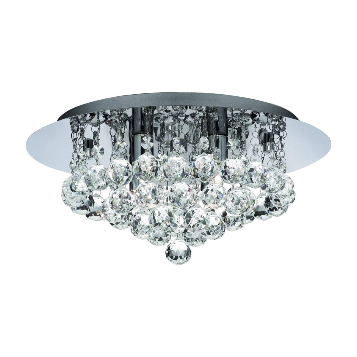 This IP44 Chrome 4 Light Ceiling Fitting with Clear Crystal Balls looks stunning on any bathroom ceiling. The luxurious light fits flush to the ceiling and is fully splash proof, featuring four LED lamps surrounded by decadent crystal trimming and balls. The elegant mirrored backplate completes the look of this chandelier and it is also IP44 rated and suitable for all bathrooms.