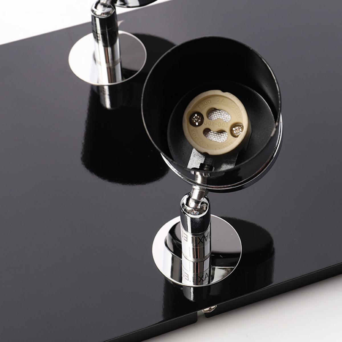 Too much embellishment is unnecessary, the outlook of this light already speaks for itself. With rotatable arms, you can adjust the lights to the right angles you want. Finished in black/white and with the silver rods, the contrast is what makes it both industrial and simple. Most suitable for dressing rooms and rooms that need a spotlight.