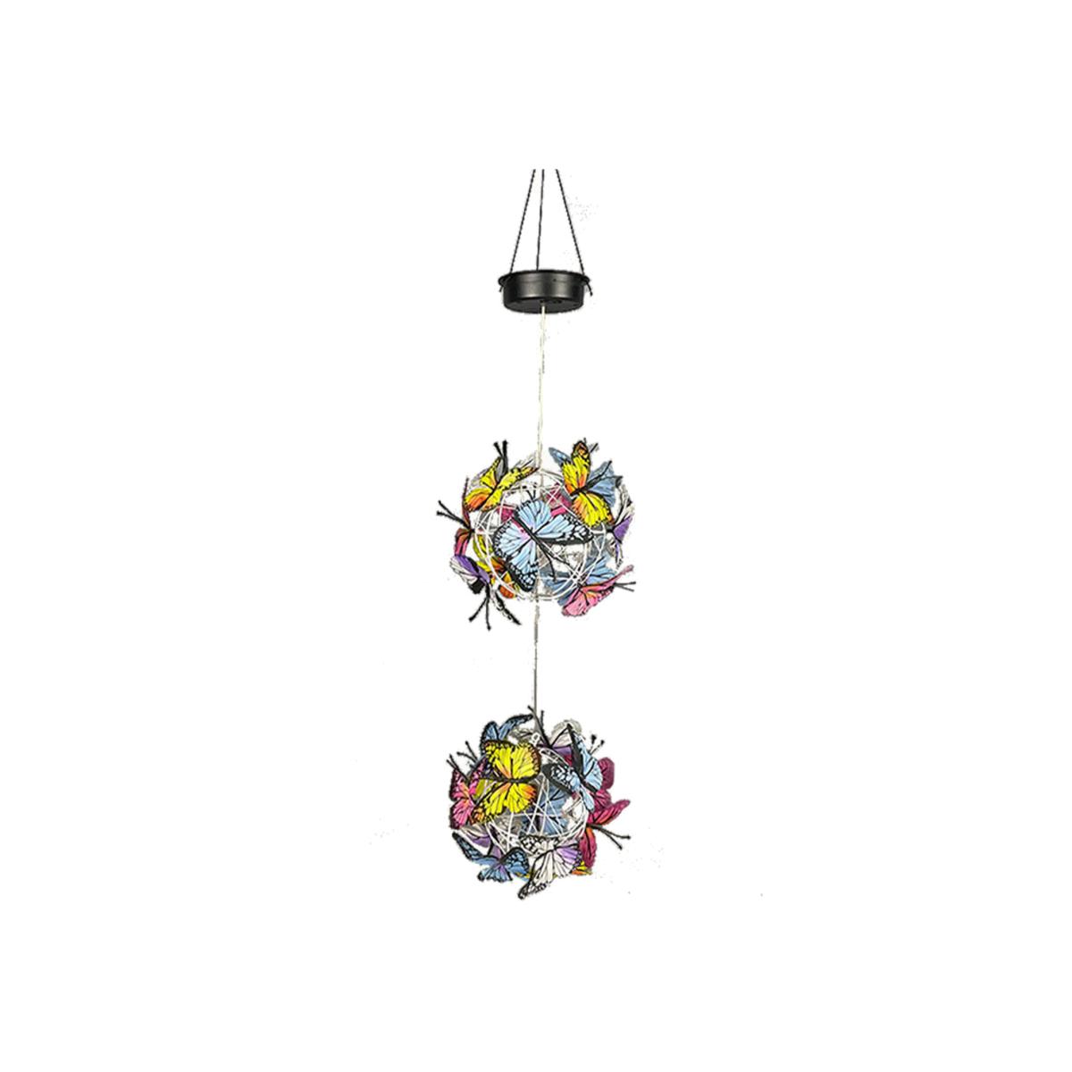 Elevate your outdoor space with our enchanting LED Solar Butterfly Ball Hanging Light! Merging functionality with aesthetics, this unique piece is the ultimate addition to your spring garden, outdoor patio, or backyard oasis. LED Solar Butterfly Ball Wind Chime Light - Double Ball / 33cm
