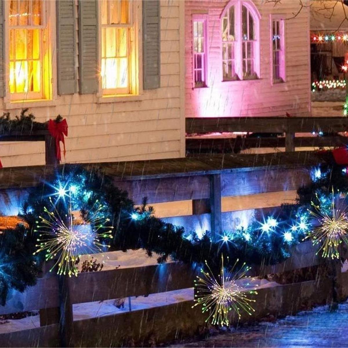 Coming with the firework design,this light is solar-powered, energy saving and environmental protection. The waterproof design can be used normally in rainy days. It's hook makes it hung at any place. It's suitable for garden, courtyard, festival decoration and lighting.