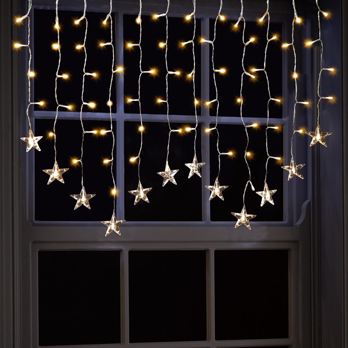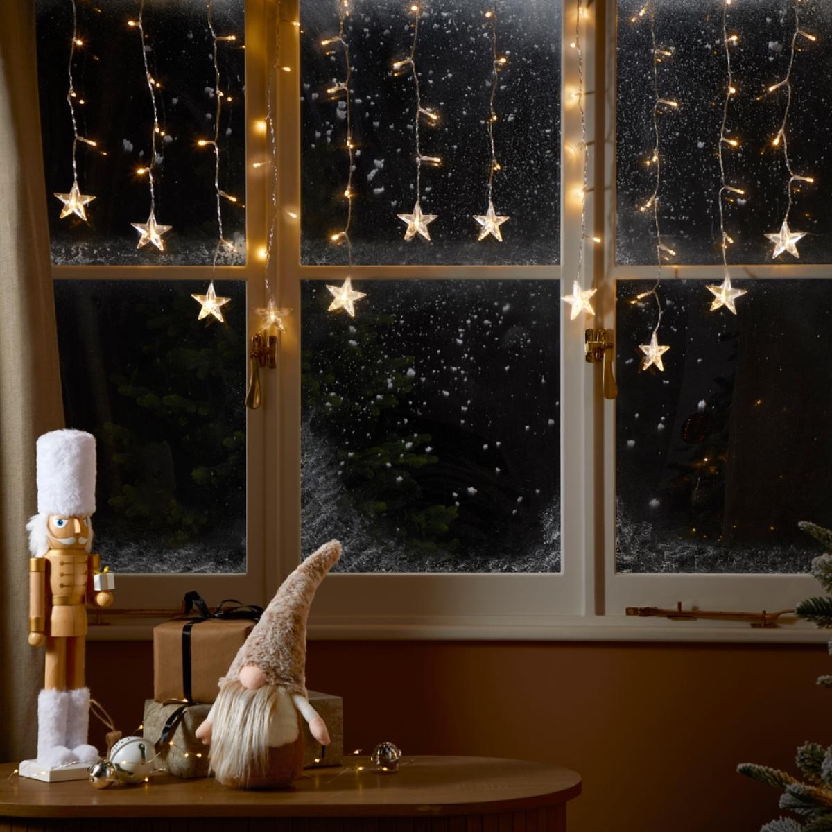 Add a touch of holiday enchantment with the LED Star Curtain Lights in Warm White. Perfect for transforming your space into a festive haven, this curtain light features a stunning cascade of twinkling stars that bring a magical glow to your Christmas. Measuring an impressive 6.2 meters, this LED curtain light drapes elegantly, creating a shimmering backdrop that captures the essence of the season. Each star is illuminated with a warm white light, providing a cosy and inviting atmosphere ideal for festive gatherings or adding a touch of cheer to your home. The LED lights are also energy efficient, helping you enjoy a more affordable celebration. Crafted with clear plastic and copper, these star curtain lights blend seamlessly with your decor, casting a soft, radiant glow. With 78 lights in total, it’s perfect for decorating windows, walls, or any space that needs some sparkle. Easy to set up and mains powered, this curtain star light is designed for effortless festive flair. Let the warm white brilliance of this curtain light elevate your decor and create a captivating display that will enchant your family and guests alike.