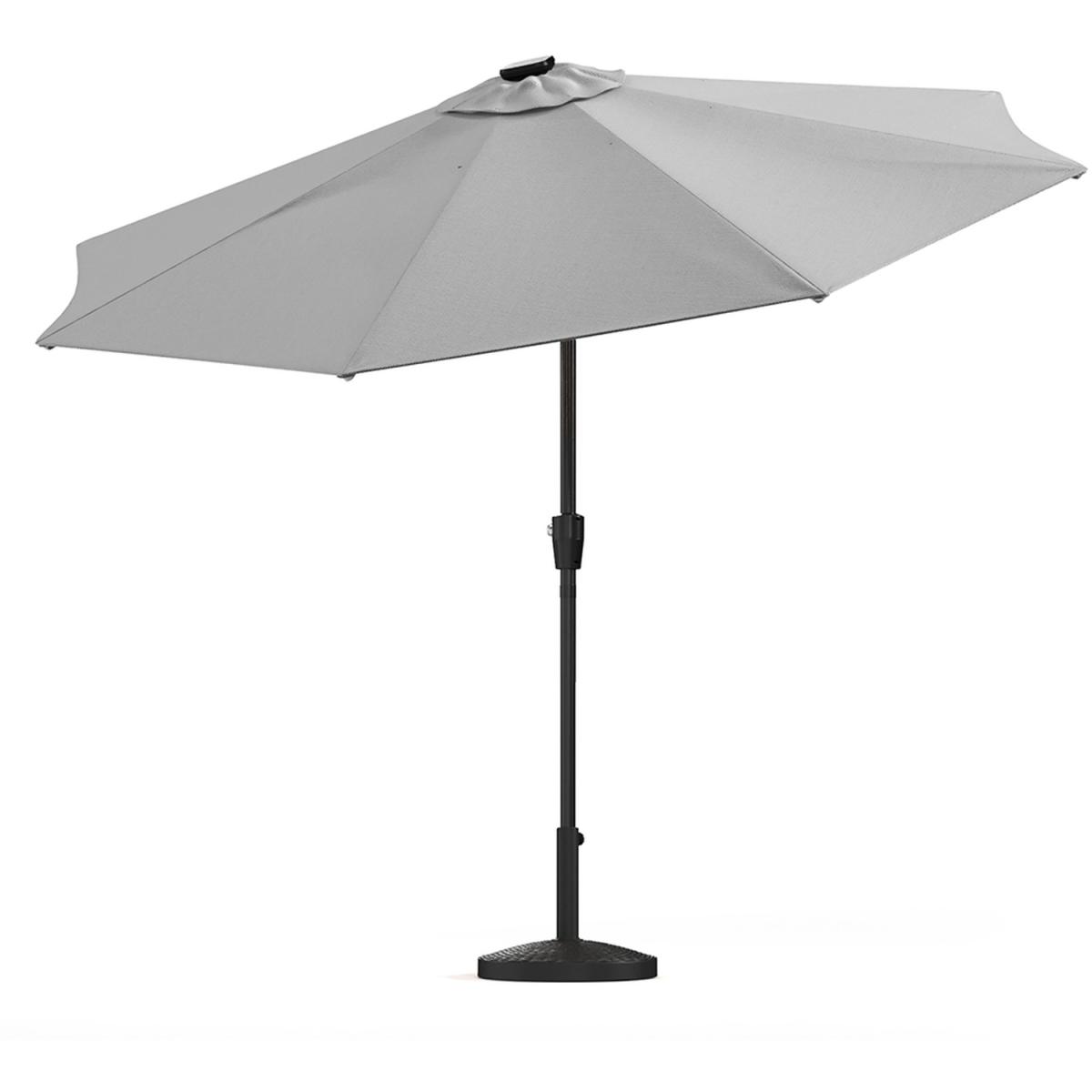 I love this garden parasol for its sleek, modern look and functionality, especially with the LED lighting feature which adds ambience after dark. It works particularly well in contemporary outdoor spaces or terraces where a touch of style is key. For practical styling, pair it with neutral or soft-toned outdoor furniture and cushions to highlight its light grey colour for a calm, cohesive look. The round base offers stability and a clean silhouette, making it adaptable to various settings. To enhance its visual appeal, consider complementing it with greenery or fairy lights for cosy evenings, and ensure the LED feature is used to create inviting mood lighting during outdoor gatherings.