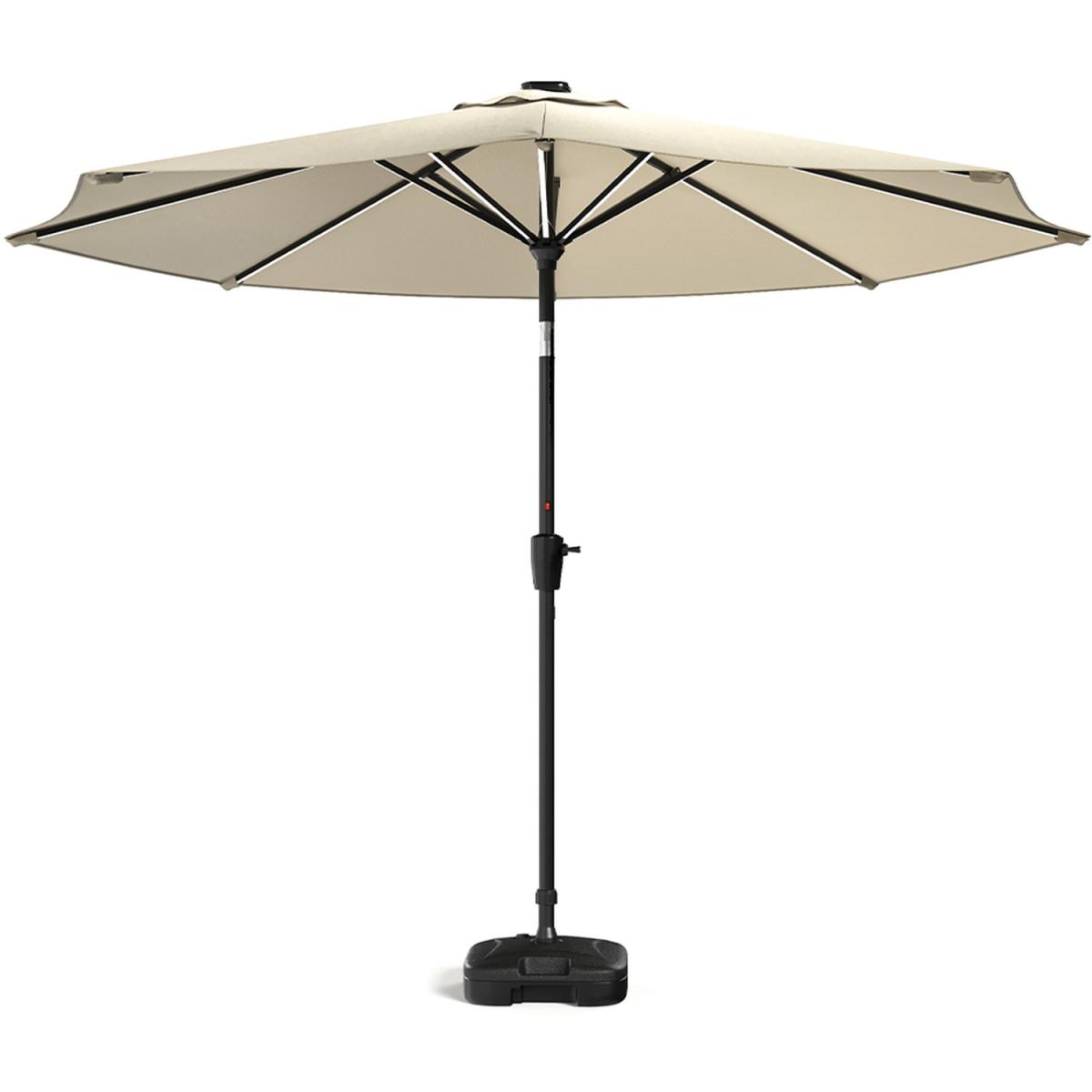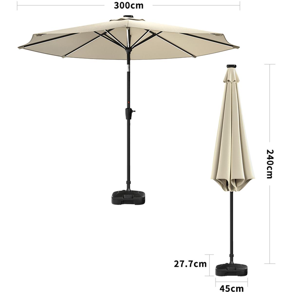 I love the outdoor vibe the LED strip garden parasol brings - its modern look with the beige fabric makes it versatile for both contemporary and classic exteriors. It works particularly well in outdoor living spaces like rooftop terraces or garden lounges, where lighting is key after sunset. When styling, consider pairing it with neutral or muted cushions for a understated elegance, or add colourful accents for a vibrant, casual feel. Its sleek square base anchors the piece nicely in lots of settings, making it a practical yet stylish addition that can elevate outdoor seating areas without overpowering the overall aesthetic.