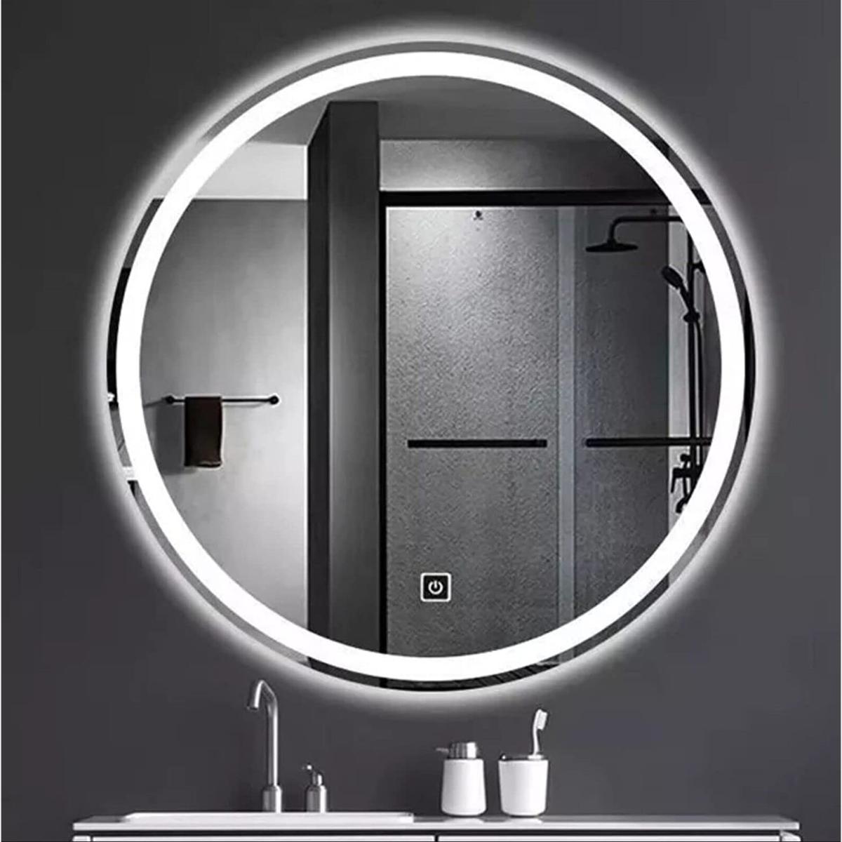LED Wall Mirror Illuminated Dual Anti Fog One Touch Switch Round Large - Silver