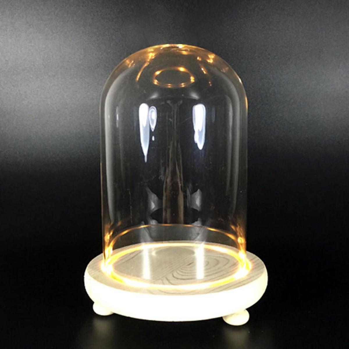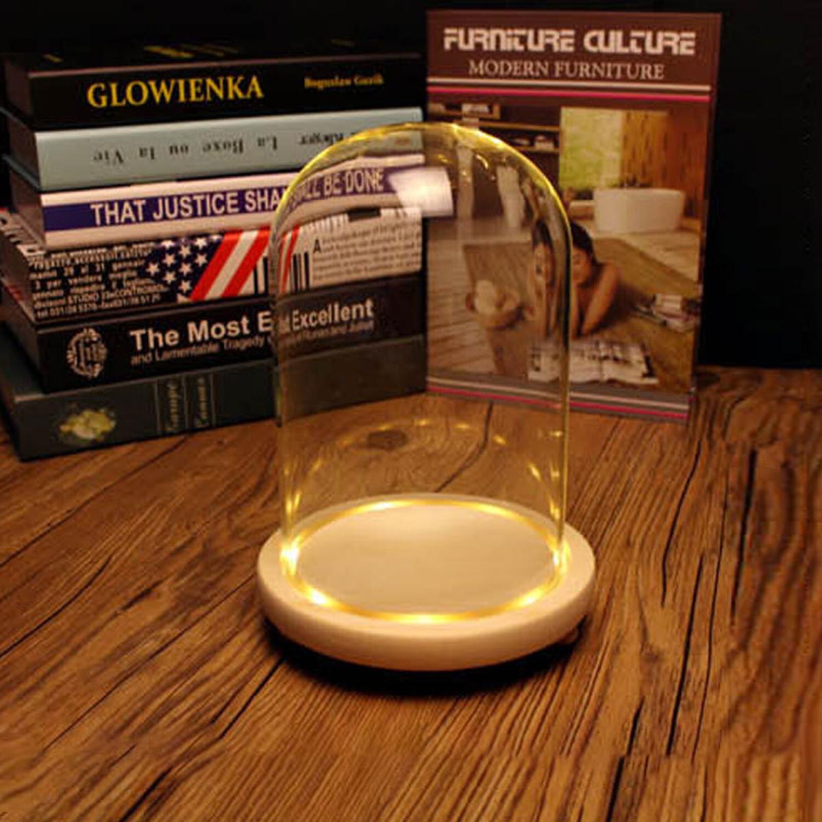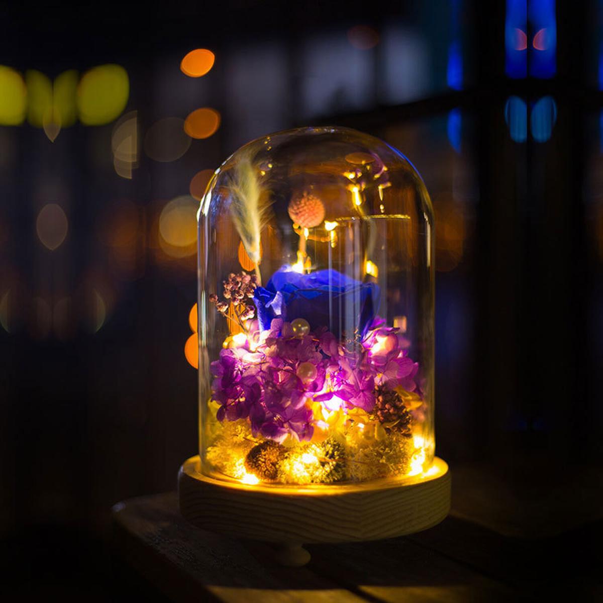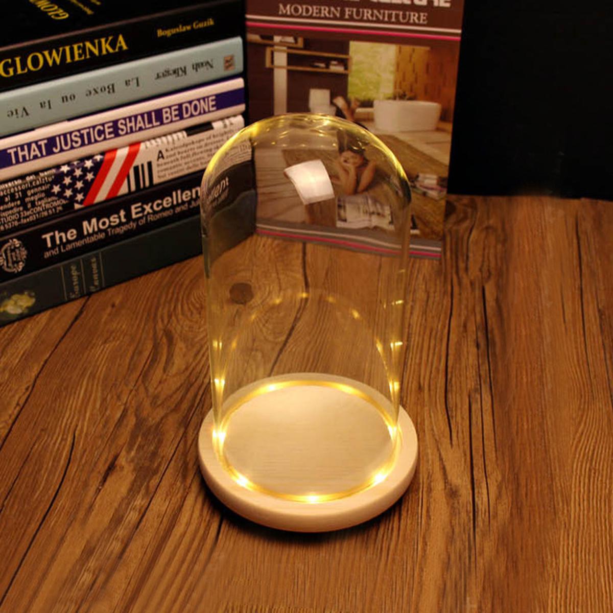Made of high-quality glass, the lampshade is clear and durable. Artificial flower string brings a realistic and charming decoration to the room. LED fairy light makes it more charming at night, shows a beautiful and elegant look while it can also be preserved lifetime. It is one of the perfect gifts for a mother/girlfriend/wife/husband. When you show it in front of them, they will like it. Packing list 1 glass cover with LED light, AA batteries powered (not included), and at the bottom of the wooden base, there is a switch control.