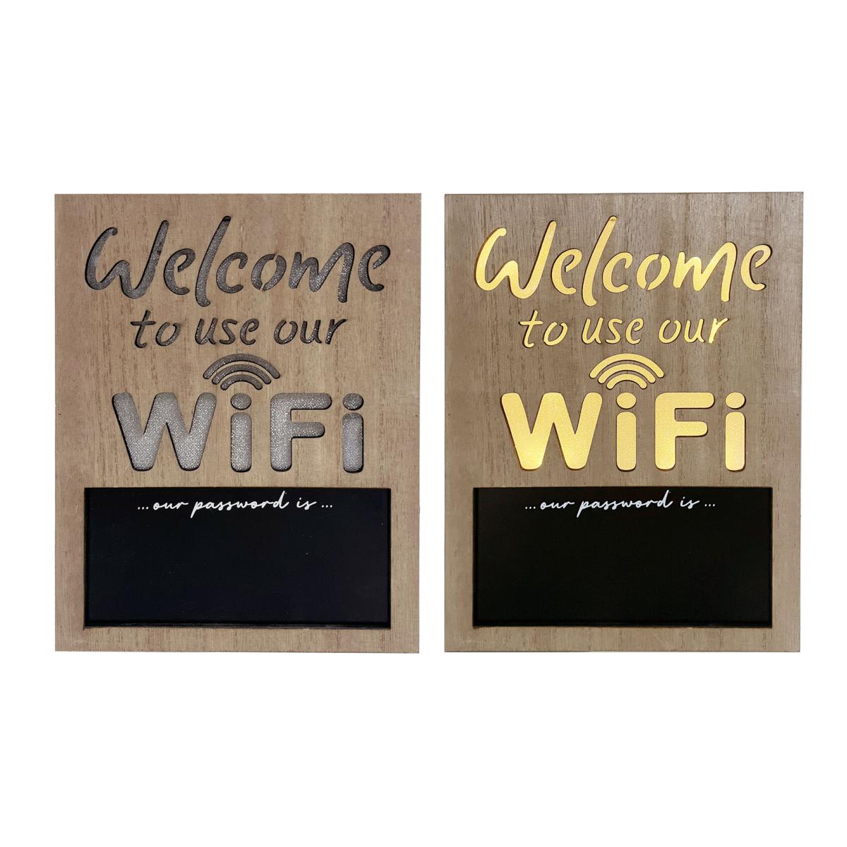 LED Welcome WiFi Wood Effect Sign - Natural