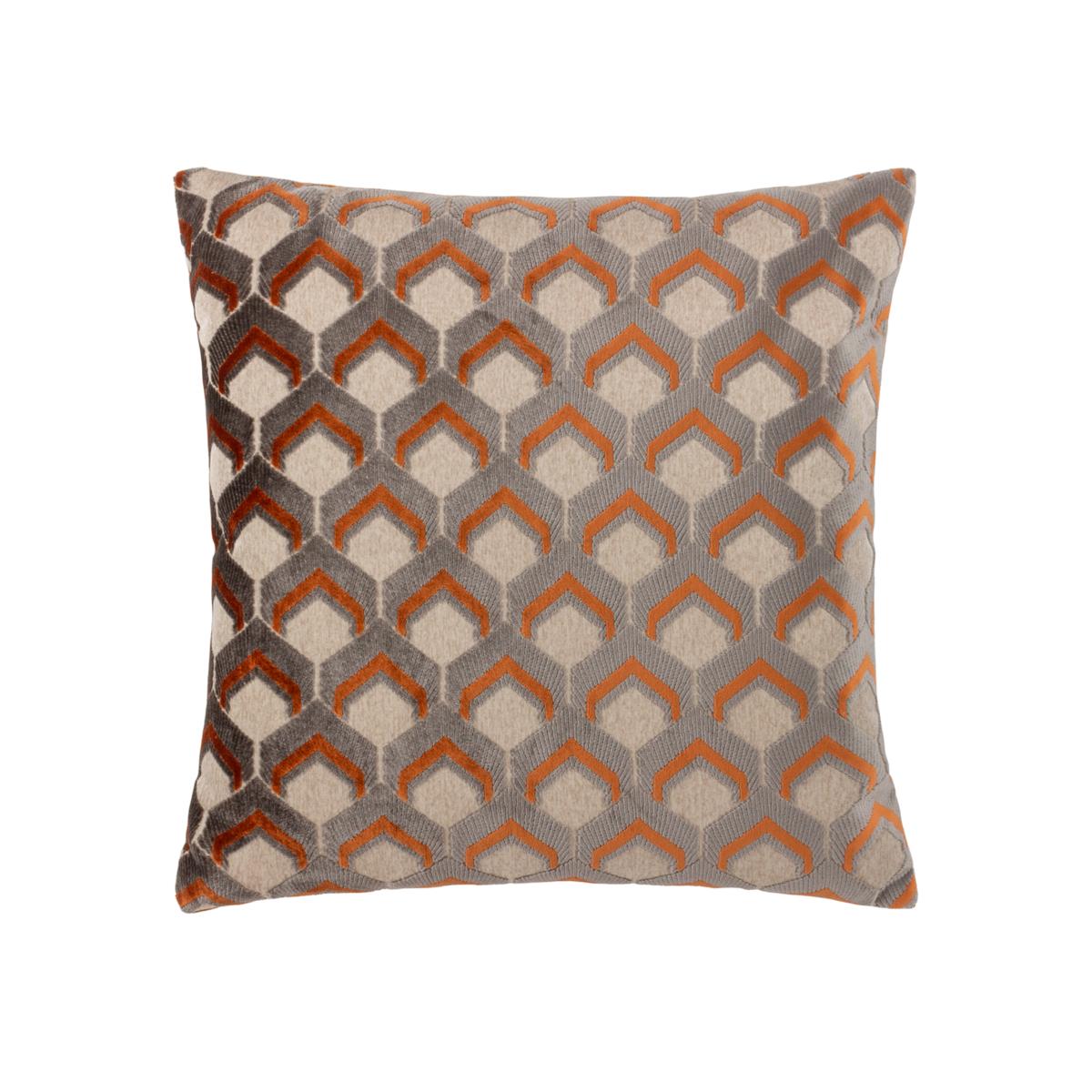 Ledbury Velvet Jacquard Cushion - Ginger and Grey