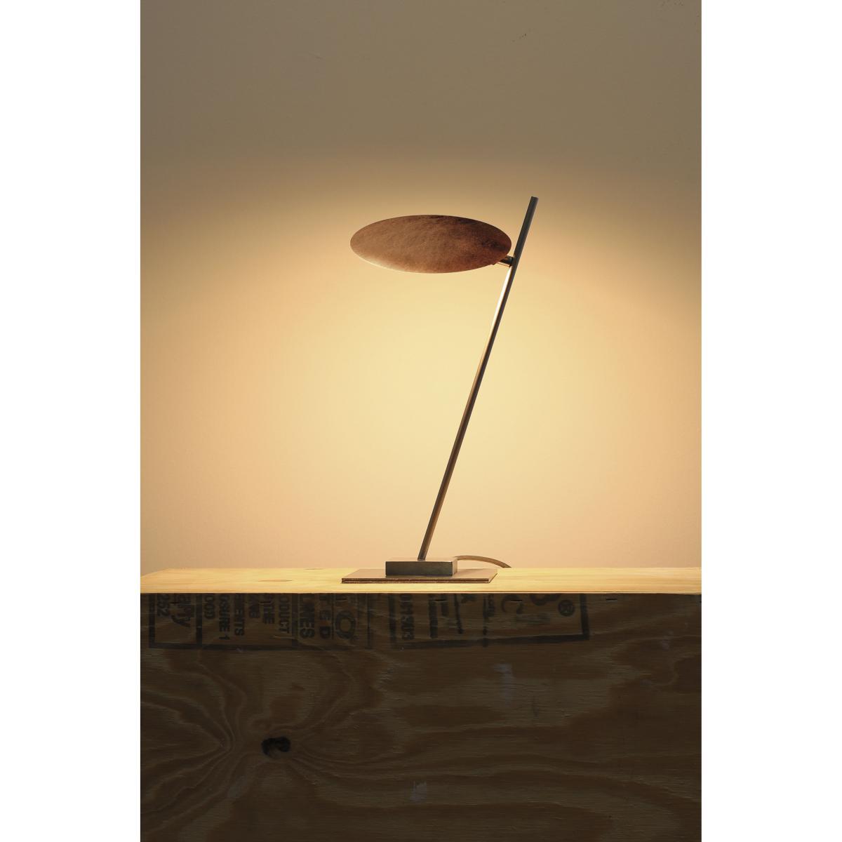 This is a minimalist table lamp in art-deco-look which features a copper finished cupola and a black metal slant rod. A sculptural and sophisticated construction exploring the concept of balance. The cupola is rotating (360°) so that you can direct the light as you need. The aluminium cupola has been covered with copper sheets by hand – a remarkable work on materials! This handicraft work gives life to a beautiful, irregular texture and interesting light reflections. The light produced is golden, soft, pleasant. The base and the rod are made of black painted steel. Catellani & Smith’s products are hand-made to a great extent. These lamps are hand-made by different artists. Each piece is strictly checked - quality guaranteed. Tiny imperfections are not a fault but a characteristic of manual work.