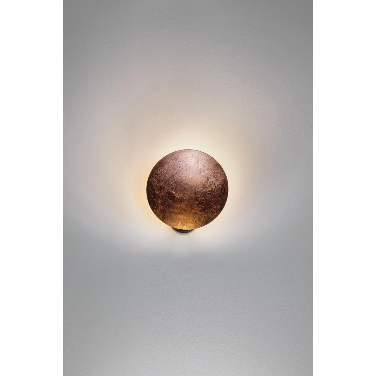 Give your walls a new dimension. Precious handworked materials and trendy LED technology – this haute couture lamp will be spectacular whether switched on or off! A remarkable work on materials: this elegant wall light features of an aluminium disk entirely covered with copper sheets by hand. Such handicraft work gives life to a beautiful, irregular texture and interesting light reflections. The light produced is golden, soft, pleasant. The disk is put on an articulated rod which allows you to direct the light. The wall bracket and rod are made of black painted steel. Lederam W1 wall light will fit into any sober, Baroque or modern style. Catellani & Smith’s products are hand-made to a great extent. These lamps are hand-made by different artists. Each piece is strictly checked - quality guaranteed. Tiny imperfections are not a fault but a characteristic of manual work.