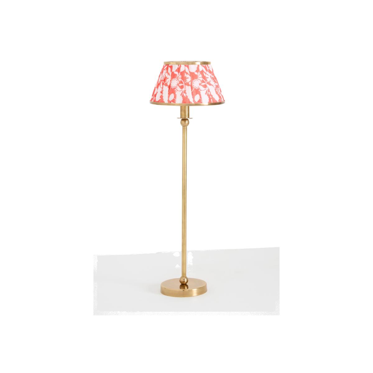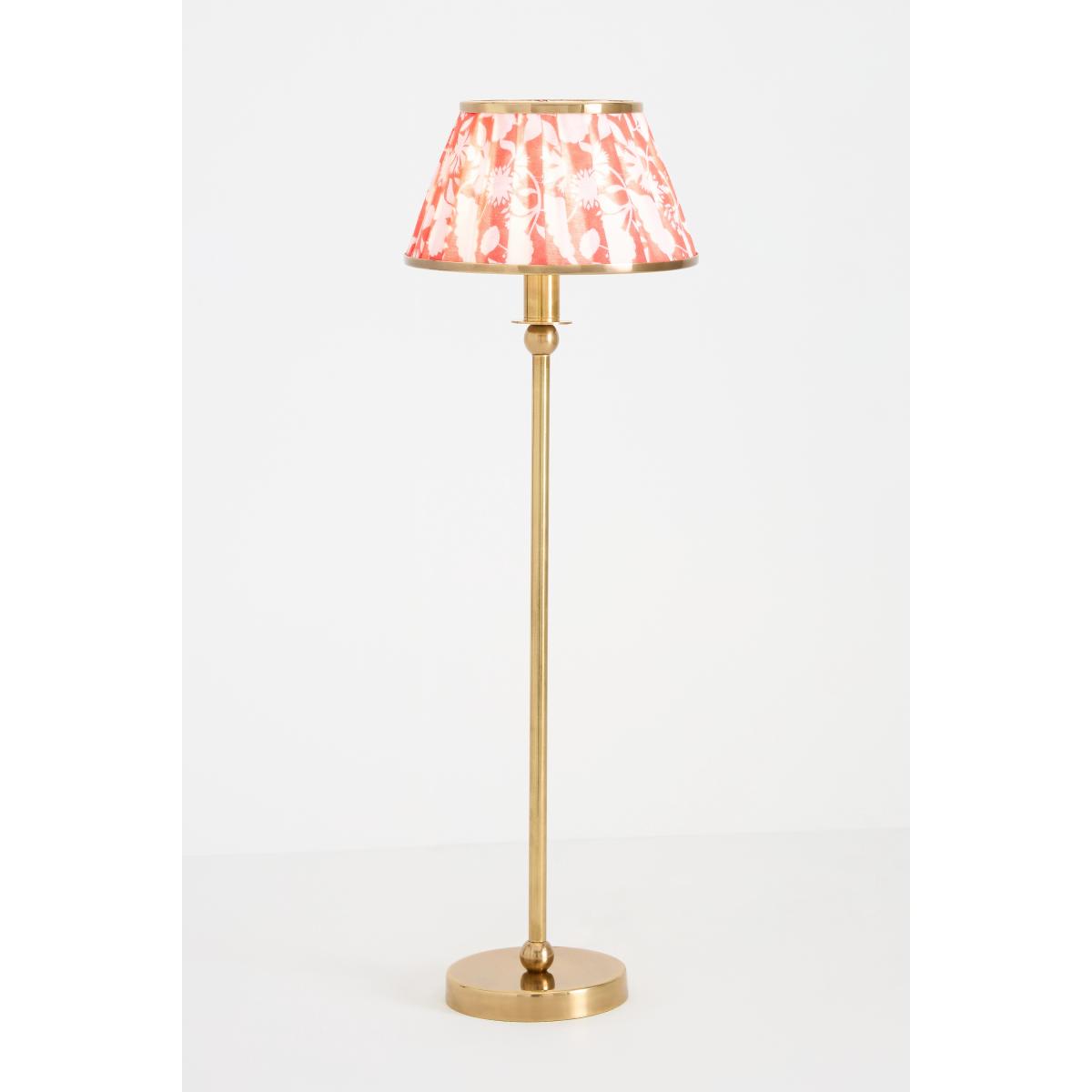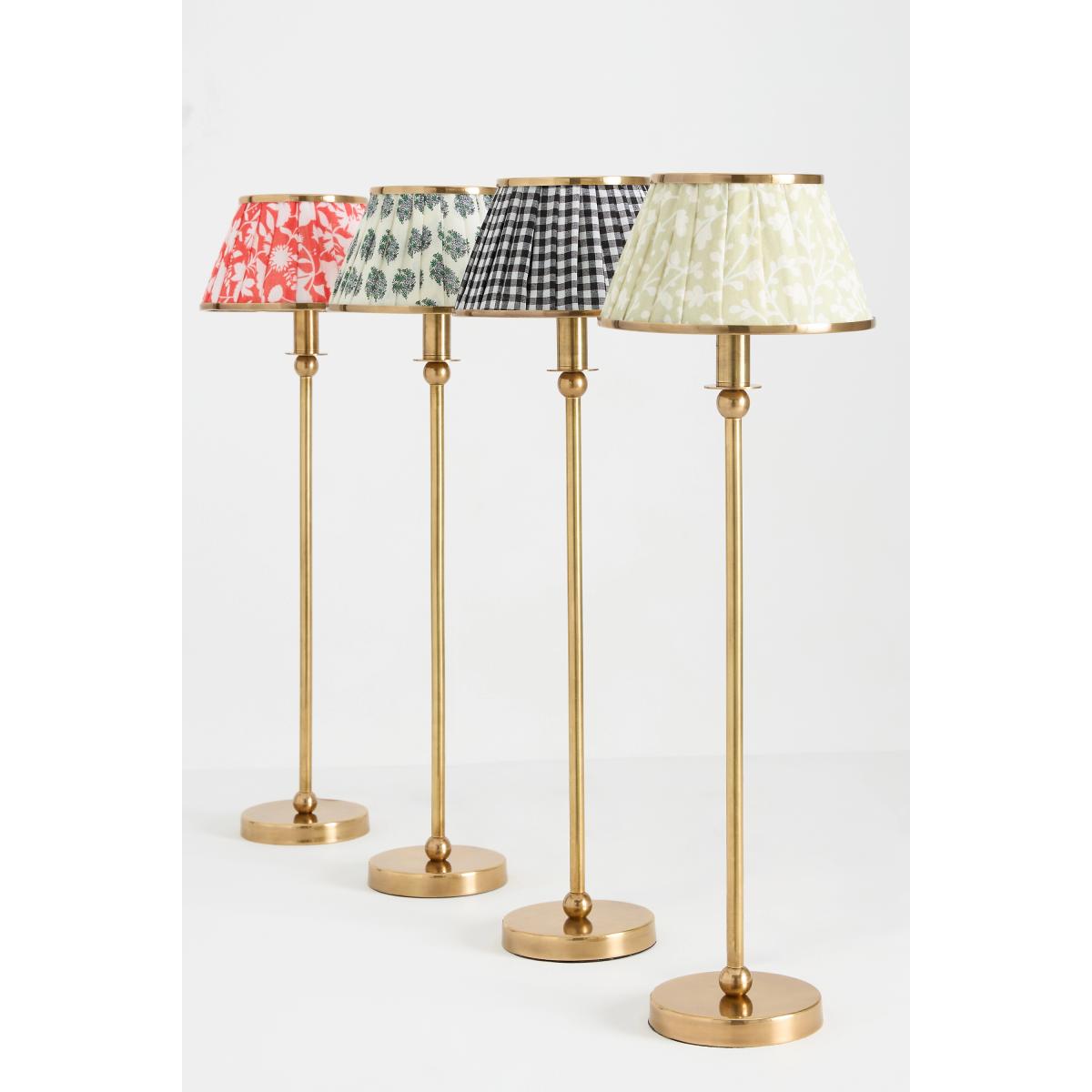 *This item is CE listed, meaning it has been tested and approved to meet the government-regulated safety standards for the UK. Use with electrical outlets of 230v or lower, as anything higher can cause fire or injury. If you're purchasing this item for use outside of the United Kingdom, employ the adapter and voltage converter suited for your country* * Brass * Printed cotton shade with clip shade included * Cream fabric cord * Fitted with a plug and on/off inline switch * One light socket * 25 watt max * We recommend using E14 bulbs * CE listed * Imported