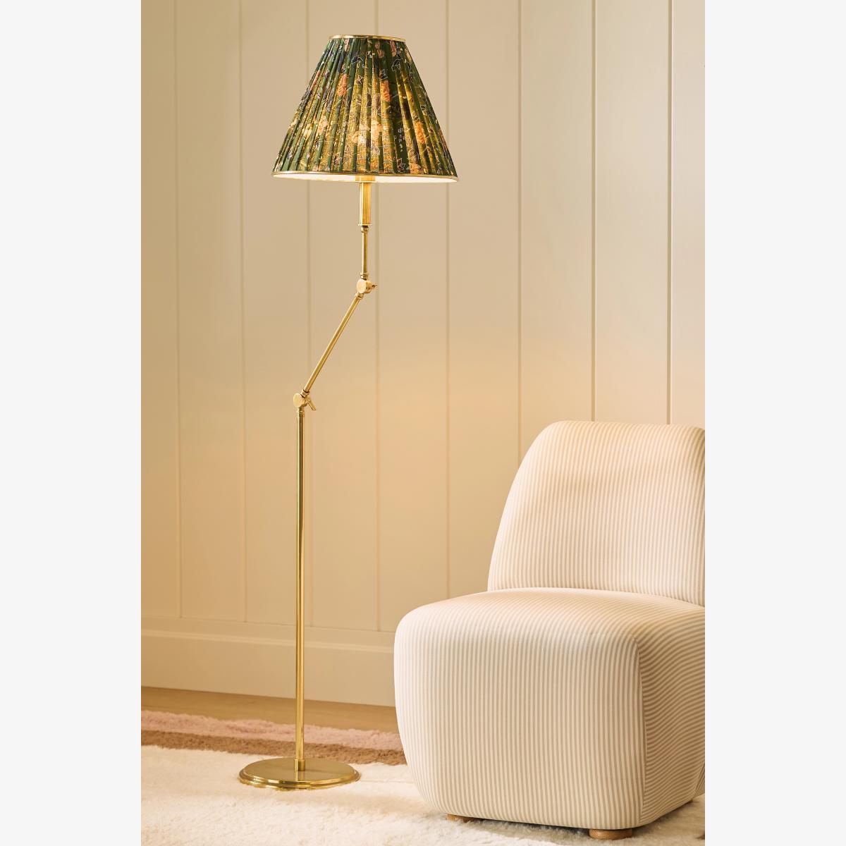 Lee Ruched Articulating Printed Shade Brass Floor Lamp