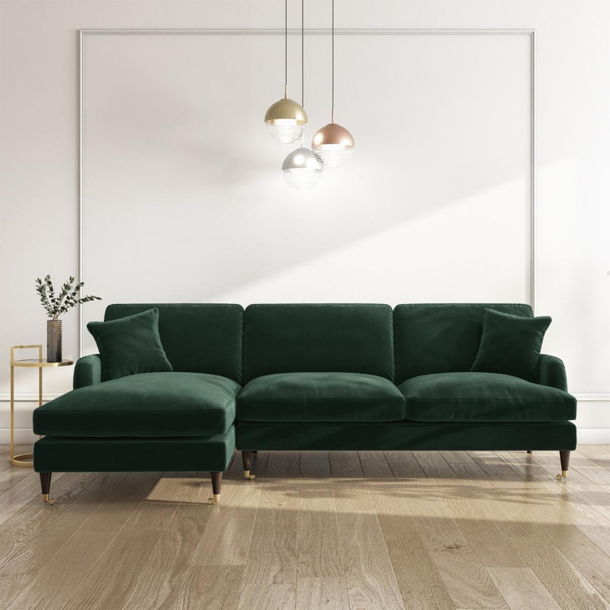 Left Hand Facing 3 Seater L Shaped Sofa in Dark Green - Payton