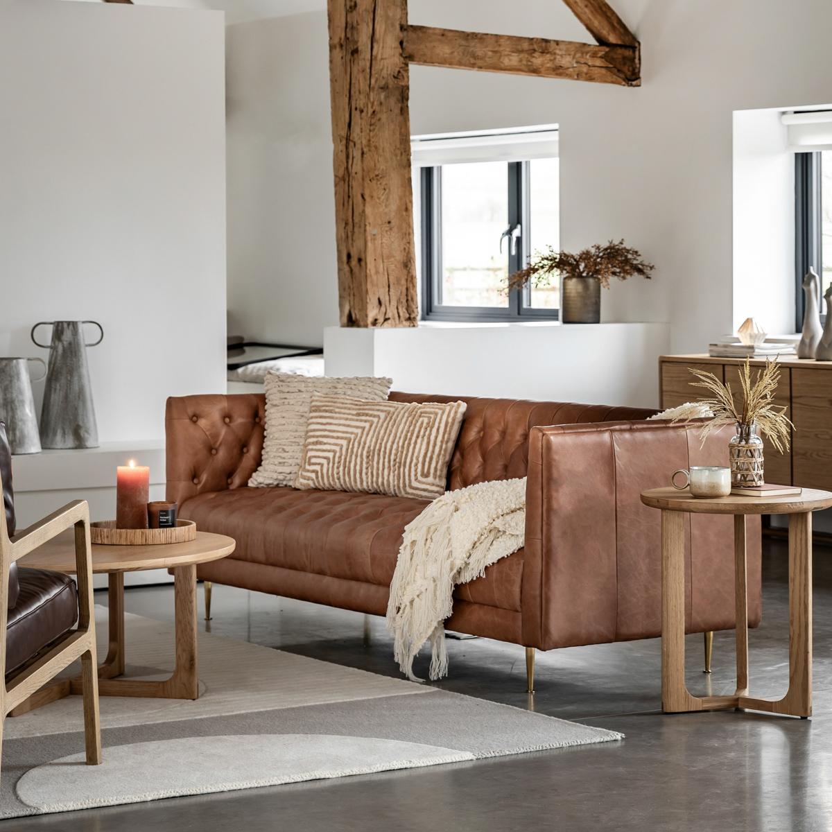 I love this sofa for its timeless appeal and versatile style. The leather finish offers durability and ease of cleaning, making it ideal for busy households. Its classic tufted design pairs well in both traditional and contemporary interiors, particularly in spaces that aim for a sophisticated yet cosy vibe. When styling around it, consider pairing with textured cushions or a soft throw to add contrast and comfort. It works particularly well in neutral or warm colour palettes, but can also serve as a statement piece in more colourful settings. Practical tips include keeping the leather conditioned to maintain its appearance and choosing a rug or artwork that complements its sleek lines for a balanced, stylish look.