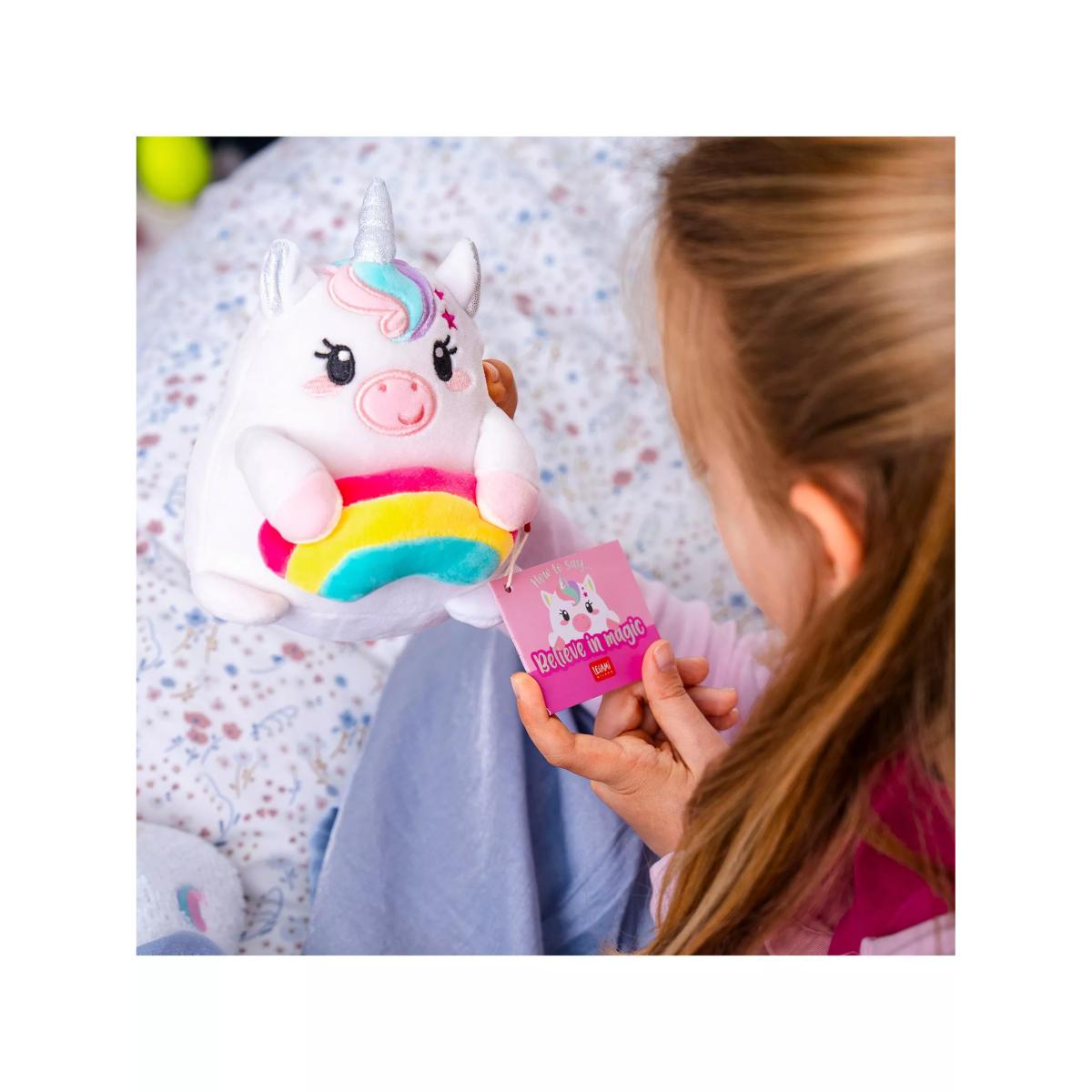 If you want your heart to talk with no words, do it with Legami’s Stuffed Toy - Super Soft! - Mini - Unicorn, a soft stuffed animal that is worth a thousand words. Choose a name and write it down on its ID card, along with its special message: “Believe in magic”.