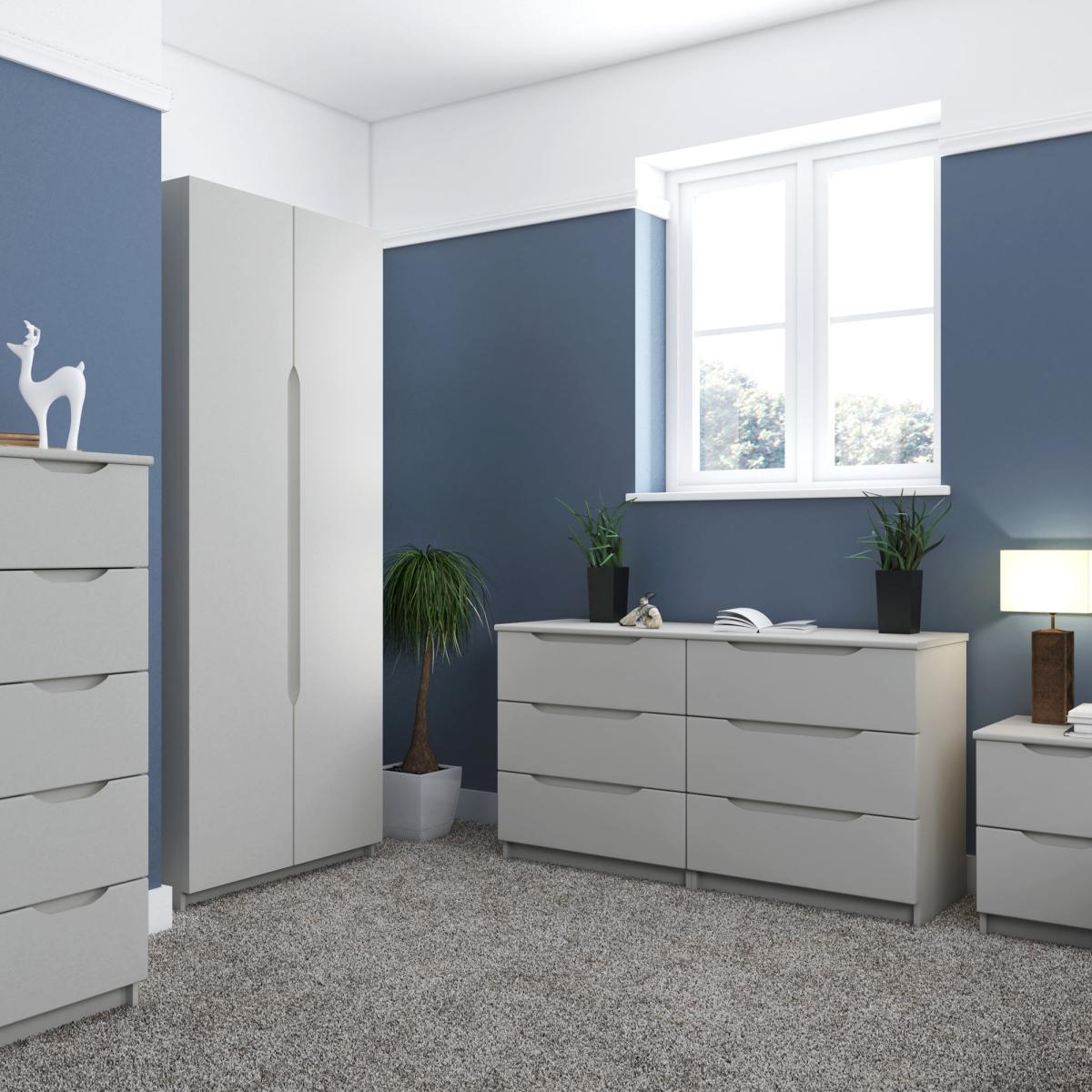 Legato Light Grey Gloss 6 Drawer Wide Chest Cream