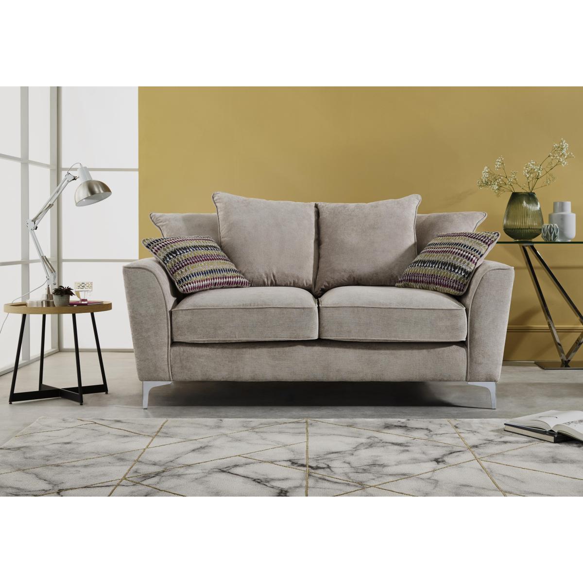Fresh modern style, legendary comfort – that’s the Legend collection. The sofas, chairs and footstools have soft modern lines and polished chrome legs, and are upholstered in family friendly flat weave fabric in a choice of beautiful neutrals and bolds. Choose relaxed pillow backs or clean lined classic backs, then complete the look with some reversible accent scatters in a choice of vibrant contemporary patterns, available to buy separately. The legendary comfort comes from the sprung seats and backs with foam flex and supersoft foam topper seat cushions and luxury blown fibre back cushions. Made exclusively for Furniture Village. Deeply comfortable, the Legend two seater pillow back fabric sofa has simple lines, gently curved arms and sleek, polished chrome legs. With sprung seats and indulgent pillow backs. Why you’ll love it. Fresh up to date pillow back style with indulgent comfort. Contemporary, polished chrome legs. Curved arms. Family-friendly fabric upholstery in neutral and bolder shades. Colourful accent cushions, available separately. Three large, luxurious blown fibre pillow back cushions. Deep FoamFlex™ seat cushions with super soft foam toppers. A Furniture Village exclusive. What you need to know. Medium comfort level. Sprung seat and back. The flat weave fabric upholstery is soft to the touch yet hardwearing. Finished with neatly tailored piping for durability. Reversible scatter cushions, in a choice of vibrant accent patterns, available to buy separately. Hardwood and composite board frame, shaped chrome finish legs. Some fabrics can show wear on areas of more use or in direct sunlight. Plump, turn and rotate seat and back cushions regularly if possible. Please read our. Upholstery care guide. For more advice. Part of the contemporary Legend range.