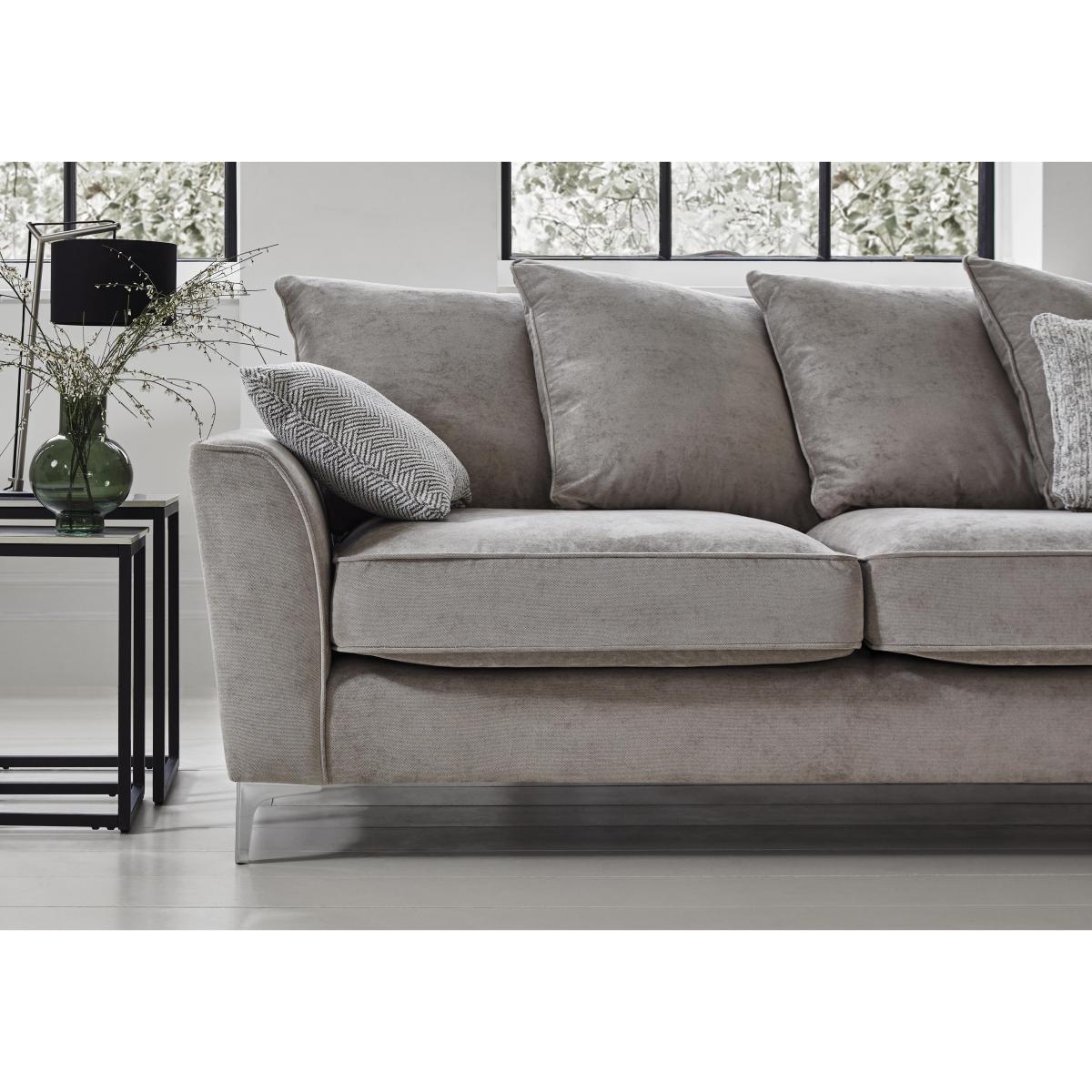 Fresh modern style, legendary comfort – that’s the Legend collection. The sofas, chairs and footstools have soft modern lines and polished chrome legs, and are upholstered in family friendly flat weave fabric in a choice of beautiful neutrals and bolds. Choose relaxed pillow backs or clean lined classic backs, then complete the look with some reversible accent scatters in a choice of vibrant contemporary patterns, available to buy separately. The legendary comfort comes from the sprung seats and backs with foam flex and supersoft foam topper seat cushions and luxury blown fibre back cushions. Made exclusively for Furniture Village. Large, luxurious and seriously stylish – that’s the Legend three seater pillow back fabric sofa. It’s the ideal place to kick back and relax with friends and family. Why you'll love it Relax in style on this fabulous 3-seater pillow back fabric sofa. Contemporary elegance, indulgent comfort. Amazing FoamFlex™ seat cushions with super-soft foam tops. In a huge choice of fashionable colours to match your decor. Soft yet hardwearing fabrics include hopsack, chenille and velvet. Shiny chrome-finished legs – or opt for light wood or dark wood. Complete the look with Legend scatter cushions, available separately. A Furniture Village exclusive. This 3-seater pillow back fabric sofa is part of the Legend range. What you need to know Medium comfort level. Sprung seat and back. Seat cushions: FoamFlex™ topped with soft foam. Pillow back cushions: blown fibre. Comes with 5 cushions. Some fabrics can show wear on areas of more use or in direct sunlight. Plump and straighten seat and back cushions daily. Rotate cushions regularly. Please read our upholstery care guide for more advice.